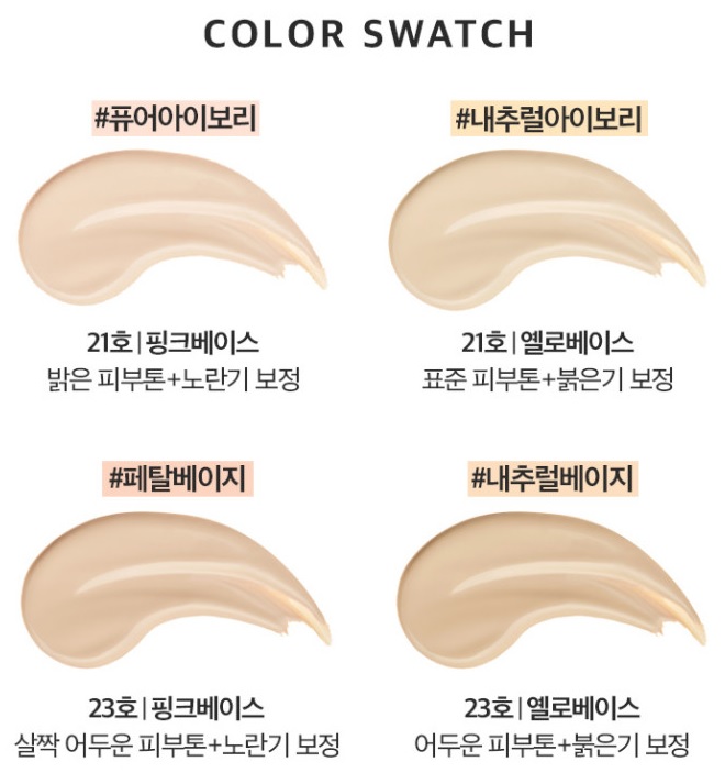 저는 23호 핑크베이스인 '페탈 베이지'색상을 구매했어요.