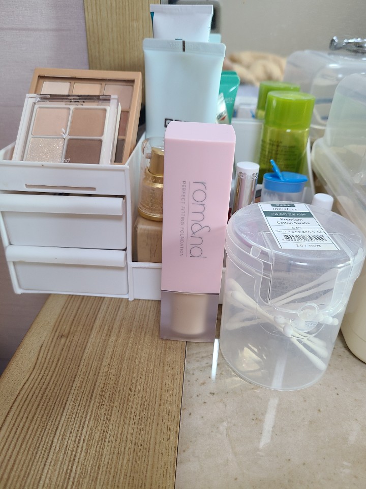 조금 더 어두운 색상의 '내추럴베이지'색상을 구매할까 고민했는데, 페탈베이지 색상도 피부톤에 어색함 없이 무난하게 잘 맞았어요. 묽은 파운데이션 종류는 커버력이 부족한 경우가 많은데 롬앤 파운데이션의 경우 제형이 묽어서 얇게 발리면서도 커버력은 괜찮은 편이에요. 얼굴에 바를 때는 얇게 밀착되지만 화장 후에는 끈적이 없이 보송보송한 느낌으로 마무리 된답니다.