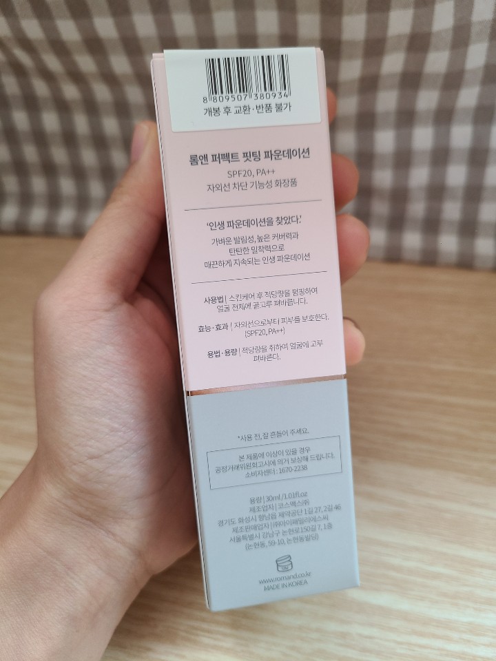 페이스북에서 '롬앤 립 990원'광고를 보고 방문했더니 벌써 립 제품은 모두 품절이고, 파운데이션 종류만 남았더라구요~? 쿨하게 벗어 나오지 못하고 '품절되기 전에 이거라도 사야지'하며 급하게 롬앤 퍼펙트 핏팅 파운데이션을 구매했어요. 제 기억에 2900원이었던 것 같아요! (배송비 별도) 이정도 가격이면 피부에 맞지 않아도 그다지 아깝지 않고, 만약 피부에 잘 맞다면 개이득이라는 생각으로 기분좋게 구입했습니다. 현재는 롬앤 공식 사이트에서 9900원에 판매되고 있어요.