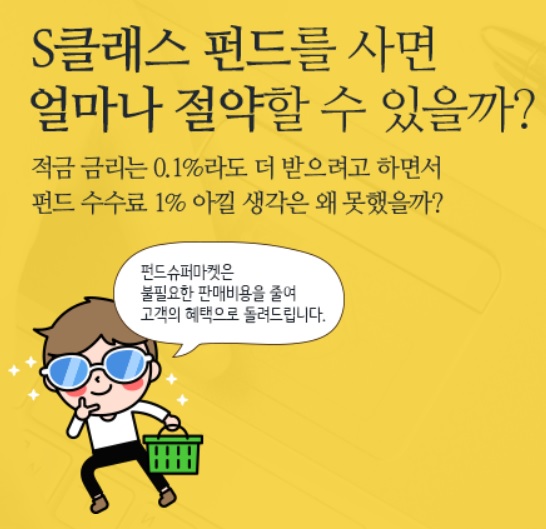 펀드슈퍼마켓(한국포스증권)을 추천하는 이유는 저렴한 보수와 수수료로 유명한 S클래스 때문입니다. 펀드에 붙는 A,B,C등 알파벳은 수수료 형태에 따라 붙는 클래스의 이름입니다. S클래스는 펀드슈퍼마켓에서만 가입할 수 있는 펀드로 선취수수료가 없고 연간보수도 1/3수준에 불과하여 합리적입니다.