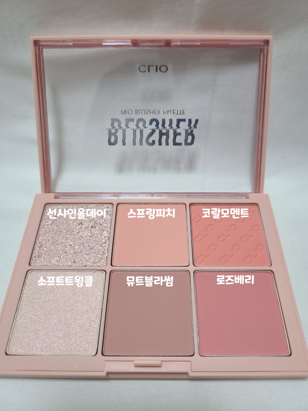 클리오 프로블러셔 팔레트는 블러셔 팔레트답게 크기도 큼직해요~ 블러셔팔레트 크기가 작으면 브러쉬 사용할 때 불편할 수 있잖아요😊 색상 구성도 정말 영롱,, 글리터, 블러셔, 하이라이터로 구성된 활용도 높은 팔레트랍니다.