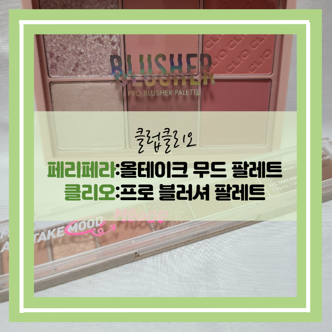 코로나19로 인해 블러셔나 쉐딩 등을 자주 하지 않아서 출근 준비시간이 아주아주 단축되었어요. 그럼에도 화장품 소비욕구는 스물스물,, 딱히 필요한 것은 아니지만 세상에 예쁘고 탐나는 화장품이 정말 많으니까요~😊 소소한 소비로 소소한 행복을 느끼면 그만이죠? 오늘은 클럽클리오에서 구매한 페리페라 '올테이크 무드 팔레트'와 클리오 '프로 블러셔 팔레트' 내돈내산 리뷰를 남겨볼게요!👀👀