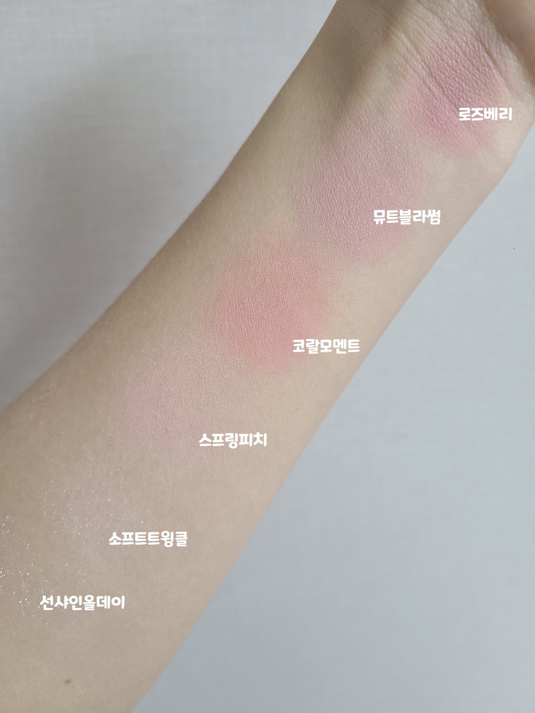 클리오 프로블려서 '블룸파스텔'발색 모습이에요! 두손가락으로 문질러서 쨍하게 발색했더니 과해보이는듯 싶기도 하지만,,😎😎 볼에 올리면 자연스럽게 느껴져요~ 확실히 웜톤보다 쿨톤에게 추천드리는 블러셔이지만 그래도 무난한 핑크, 코랄 색상으로 구성되어 있어서 웜톤 분들께서도 활용하기 좋을 것 같아요. 6구 블러셔 팔레트에 하이라이트를 포함한 여러 가지 색조합으로 이루어져 있어서 블러셔 및 아이메이크업까지 활용도가 높답니다. 다양한 색의 블러셔를 사용하고 싶으신 분들께 추천드려요~