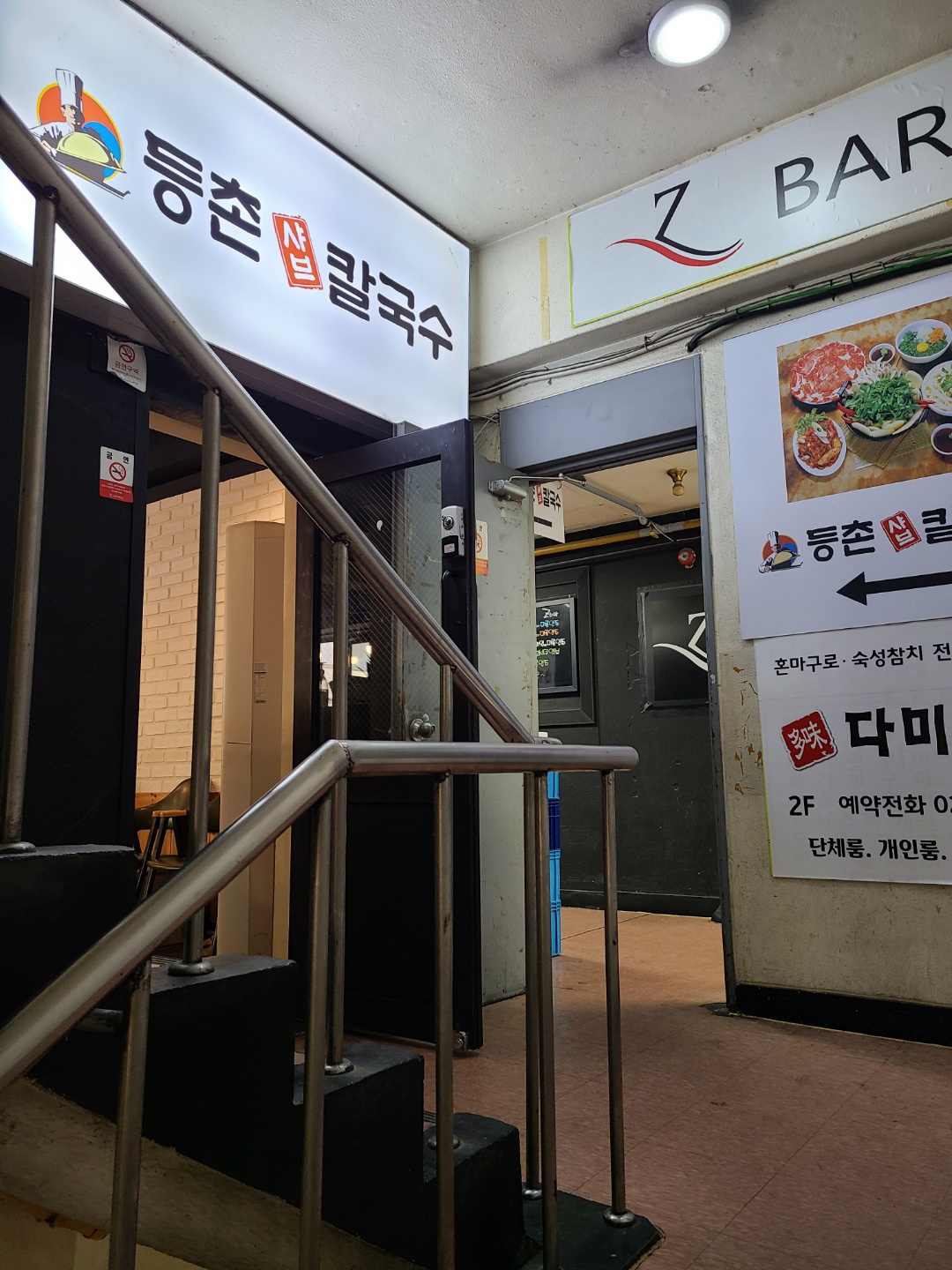 노원역 등촌샤브칼국수가 있는 건물은 세월의 흔적이 느껴져서 분위기가 어둑해요. 2층 계단을 올라오면 바로 등촌샤브칼국수가 반겨줍니다. 식당내부는 넓은 편은 아니지만 단정하고 청결해요!