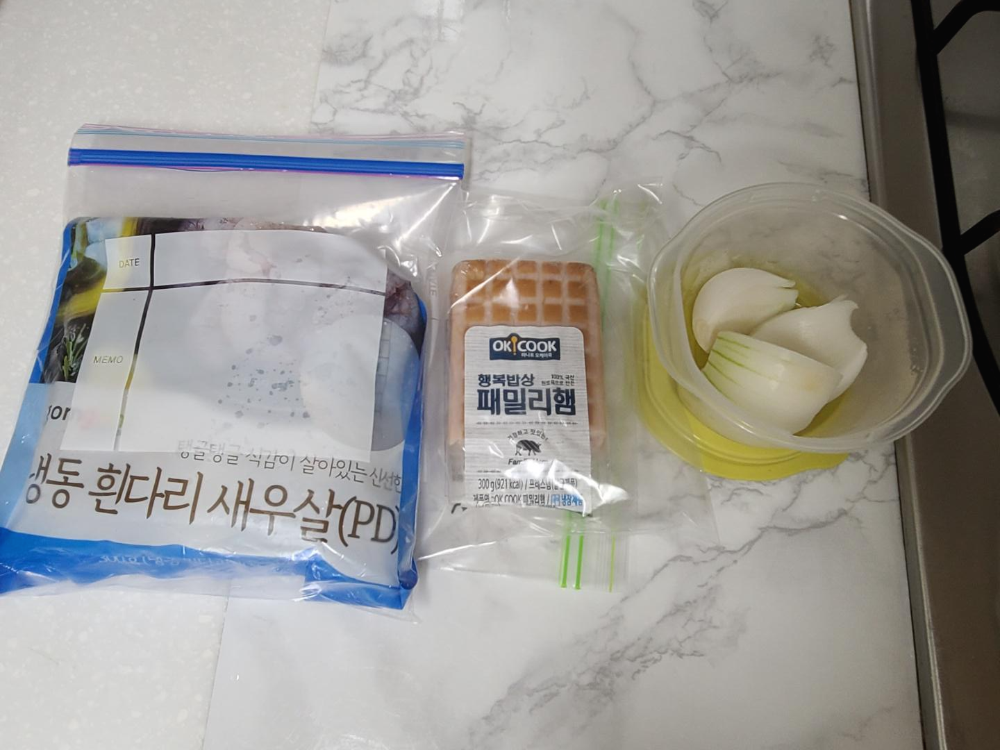 새우는 물에 씻은 후 투하~ 쿠팡에서 구매한 '냉동 흰다리살 새우'인데, 탱글하고 맛있어서 여러 차례 재구매하고 있어요. 오늘 치즈밥에 아낌없이 넣어서 다시 재구매할 예정입니다. 새우를 잘못 구매하면 물먹은 새우처럼 요리 후 크기가 줄어 실망할 때가 있지요ㅠㅠ 쿠팡 새우 추천드려요!