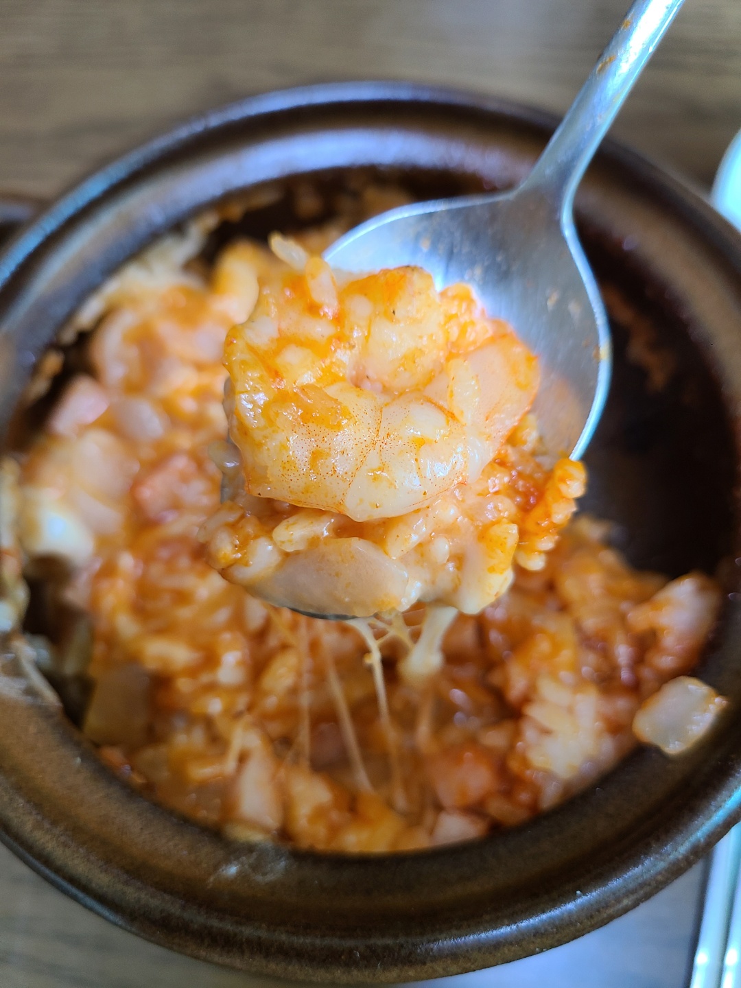 치즈가 쭉~ 늘어나는 모습. 정말 간단한 요리이지만 보장하는 맛입니다. 한국인이 사랑하는 고추장 베이스이다보니 맛이 없을 수가 없어요.🍴🙂🍴