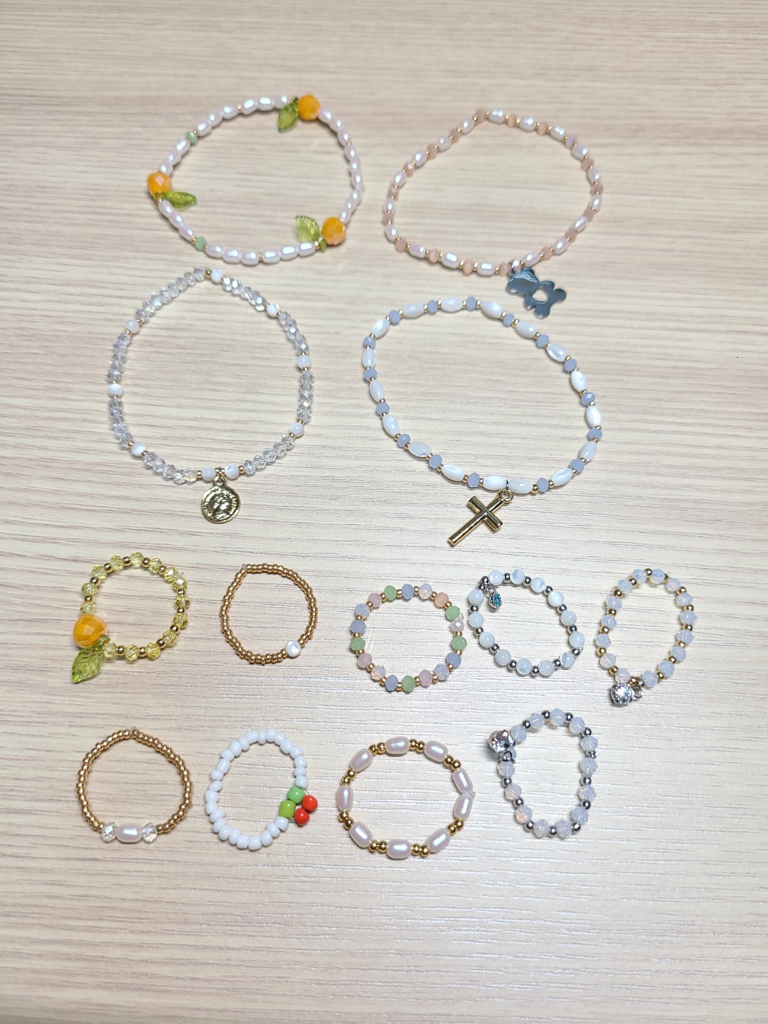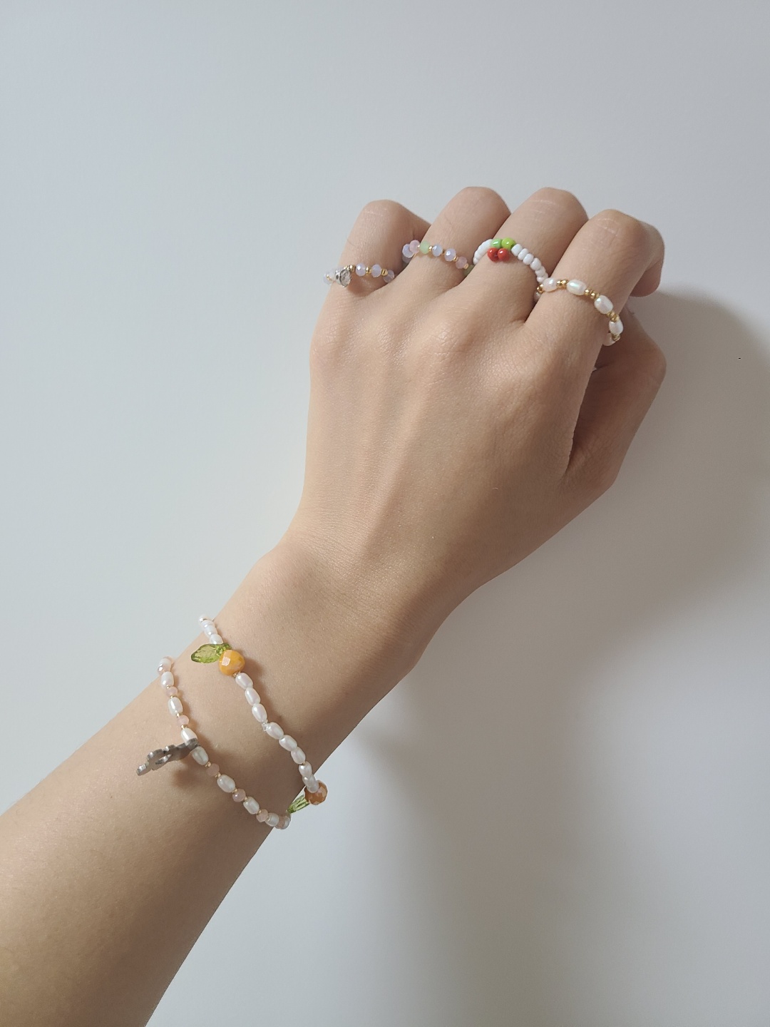 데일리로 착용하기도 부담 없이 예뻐요! 핸드메이드 비즈 반지는 쇼핑몰에서 개당 약 2000원, 팔찌는 3000~5000원 정도에 판매하고 있는데 직접 고른 비즈로 만드니 디자인도 비슷하고 완성도가 높아서 좋아요. 저는 반지는 선호하지 않아서 팔찌 위주로 착용하고 반지는 친구들 나누어 주려구요.😁😁