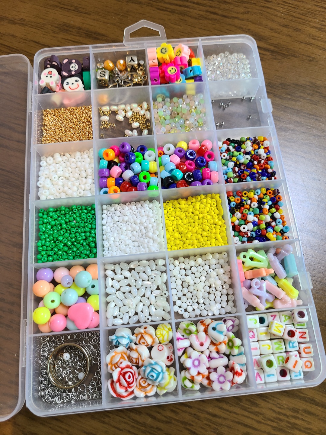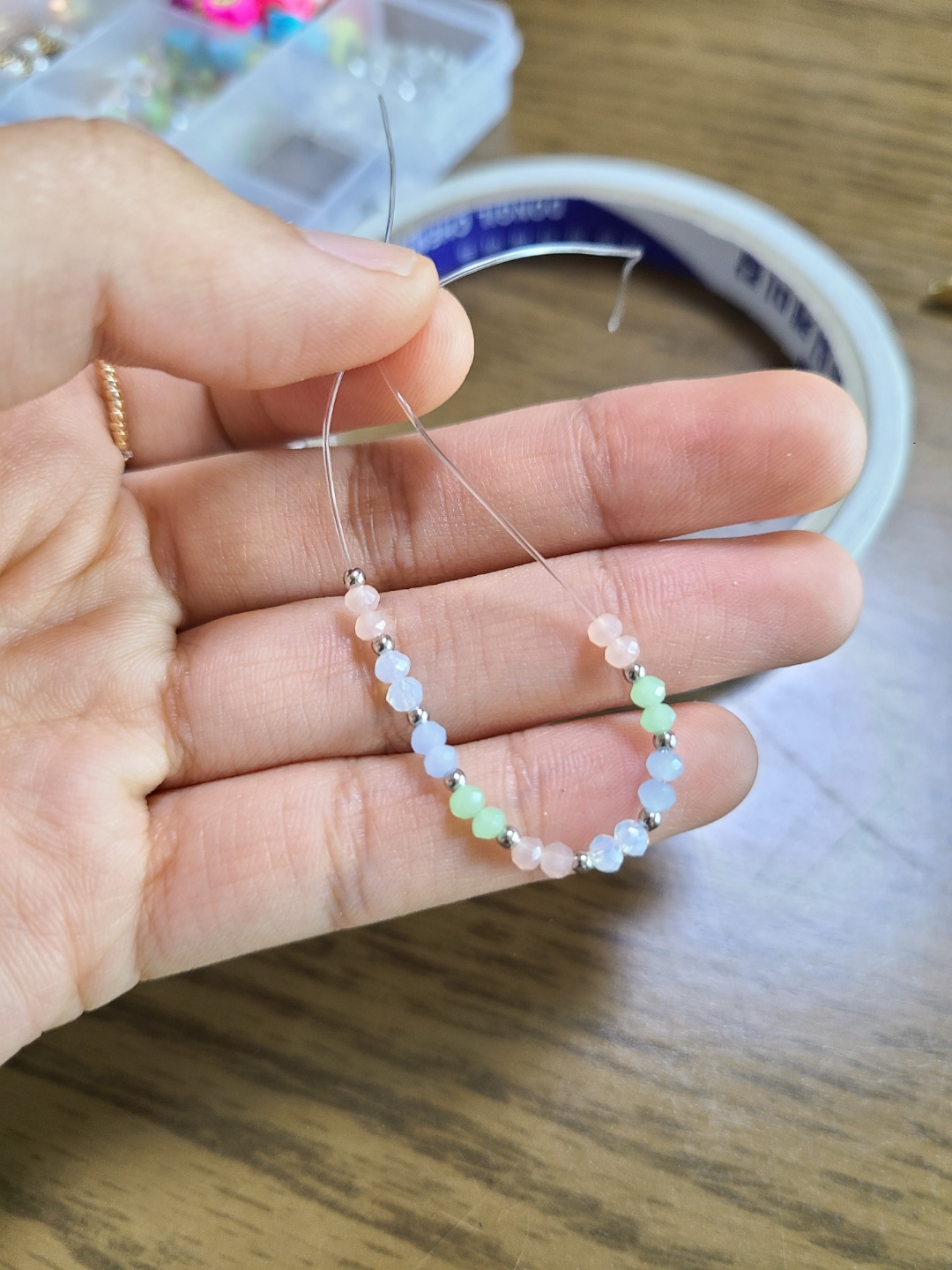 이것 저것 약 사만원 정도 구매했는데 양은 많지 않죠?😅 (아랫쪽의 알록달록 유아 비즈는 집에 있던거!) 크기가 작다보니 생각보다 적은 양으로도 많은 반지와 팔찌를 만들 수 있더라구요~ 금색과 은색의 미니 비즈는 여기저기 활용도가 좋으니 구매를 추천드려요.