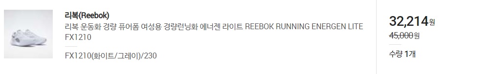 짜란~ 제가 구입한 리복 에너젠 라이트FX1210 운동화는 3만원 초반으로 구매했어요! 정말 저렴하지 않나요?👀 네이버쇼핑으로 가격을 비교하고 'SSG(쓱)'에서 구매했습니다. 최근 필립스 에어프라이어도 그렇고 요즘 쓱을 자주 애용하고 있어요. 배송도 빠르고 굿굿~