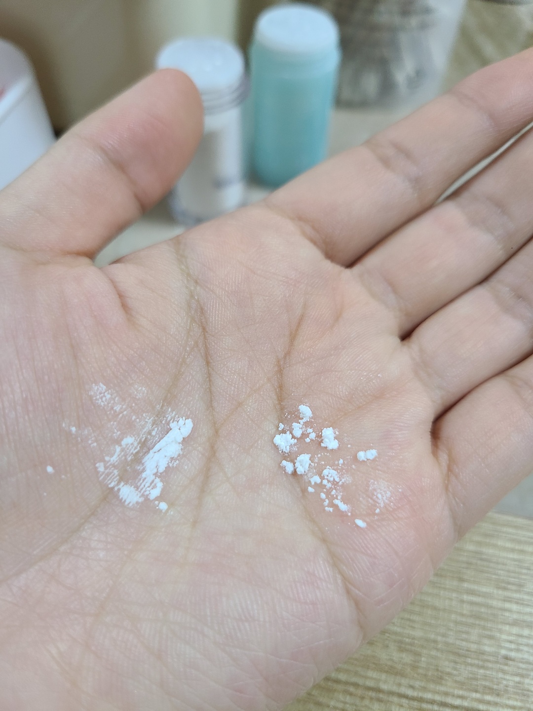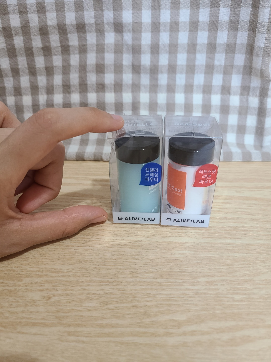 왼쪽이 레드스팟 파우더, 오른쪽이 센텔라 파우더입니다~ 두 파우더의 입자나 발림성은 크게 차이가 없는 것 같아요. 레드스팟 파우더는 레몬 향이 난다는 후기를 보았던 기억이 있는데 무향인 것을 보니 리뉴얼 된건가? 싶습니다. 얼라이브랩 트러블 피부 조합 파우더의 특징과 2주 이상 사용해본 개인적인 후기를 적어볼게요.
