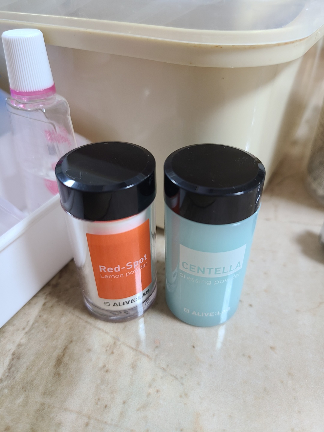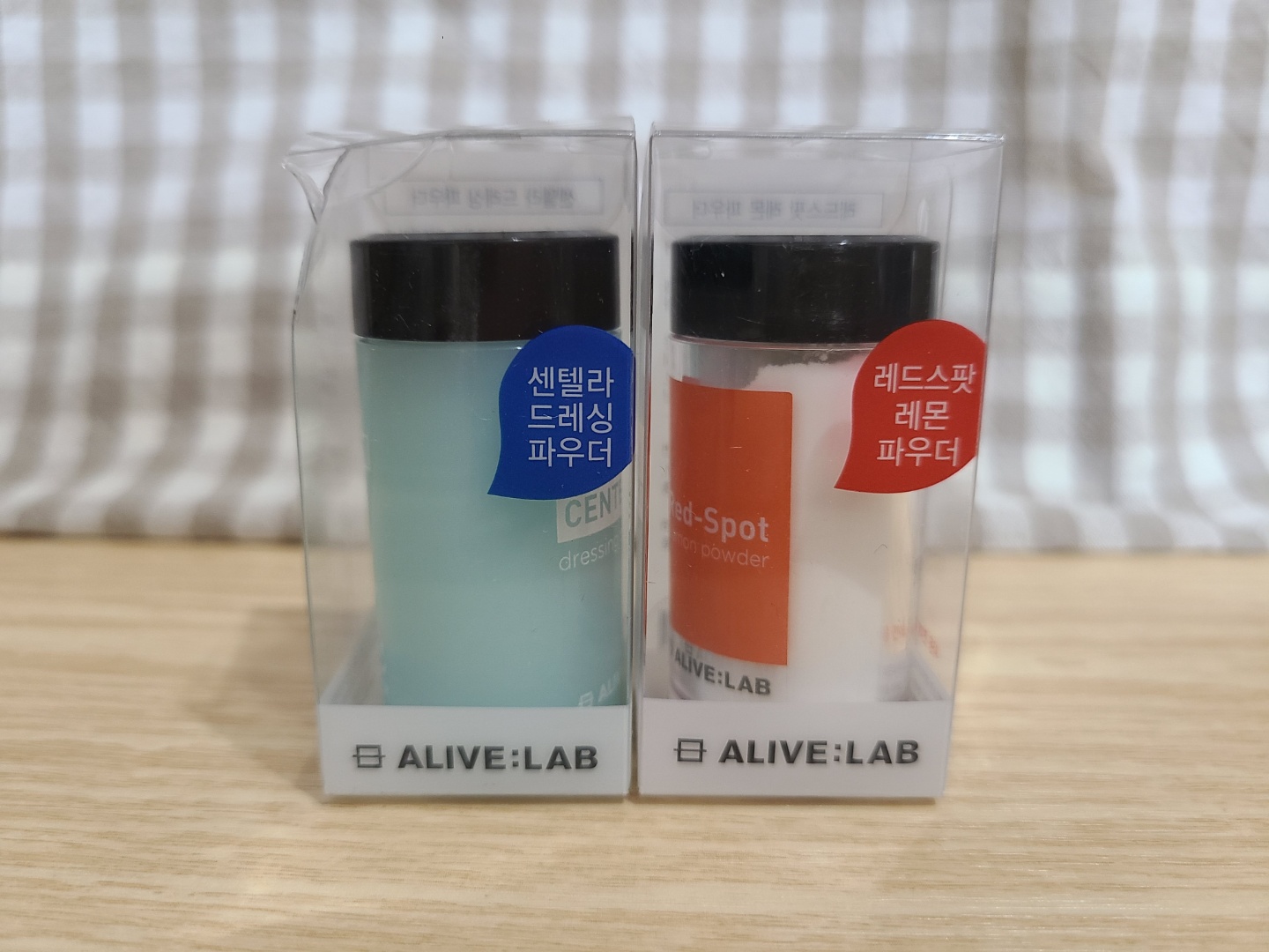 얼라이브랩의 트러블 피부 꿀조합 추천 제품이자 베스트 조합입니다! 얼라이브랩은 센텔라 드레싱 파우더로 입소문이 났는데 레몬 파우더도 함께 구비해두면 좋을 것 같아서 구입했어요. 얼라이브랩 제품은 오프라인이나 타 판매처에서 구매할 수 없어서 공식홈에서 구매해야하는데, 센텔라 파우더 하나만 사기에는 배송비가 아까운 마음에 필요치 않은 소비를 했지만! 결과는 만족하고 있어요.