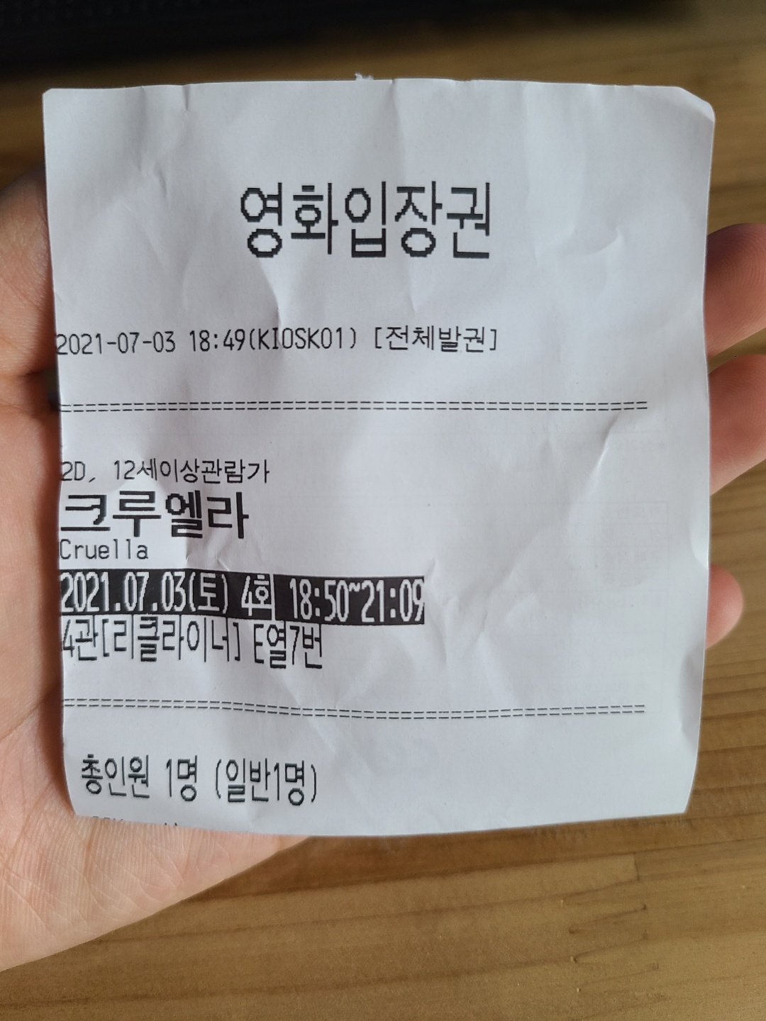 다 젖었습니다.😂😂 비바람에 우산을 써도 쓴 것 같지 않더라구요? 바지가 돌청 바지가 되어 버렸네,, 장마가 어서 지나가면 좋겠습니다! 손에 든 것은 CGV가는 길에 메가커피에서 사 온 커피프라페. 날도 엄청 춥고, 옷은 다 젖어서 찜찜하고, 차가운 음료를 마셔서 그런지 속도 아프고 컨디션은 안좋았지만 크루엘라는 정말 재미있게 봤어요. 5월에 개봉한 영화인데 7월인 지금까지 영화 예매순위 2위를 유지하고 있는 이유를 느낄 수 있었습니다.