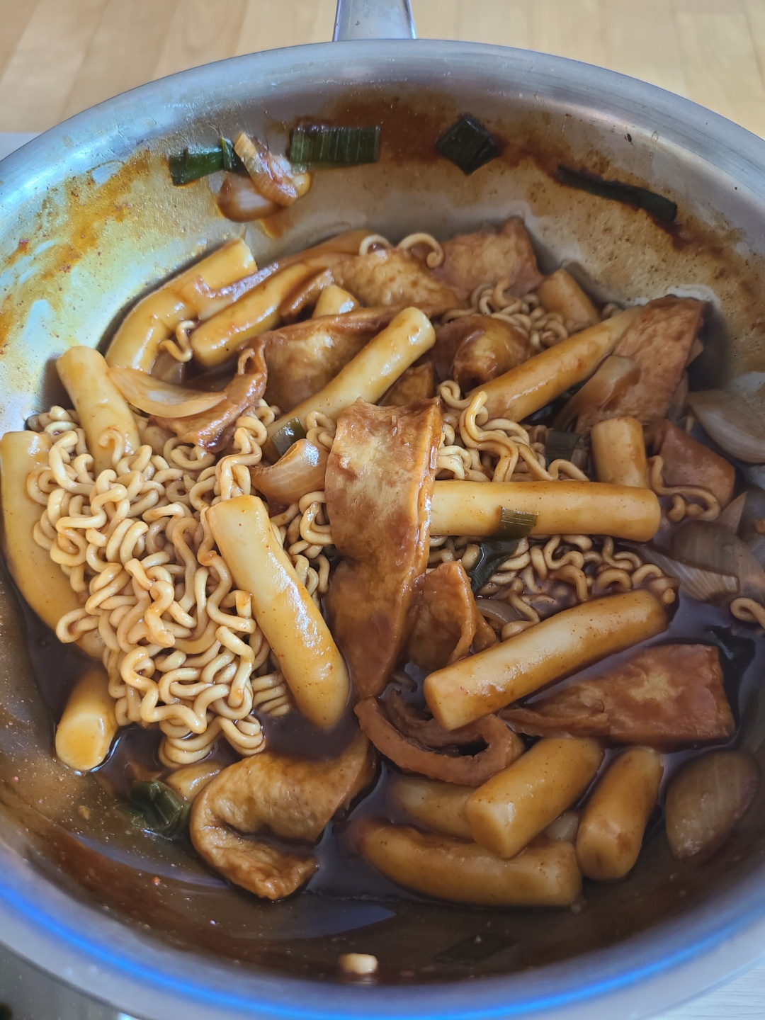 해동된 떡과 소스를 식용유와 함께 센 불에 휘리릭 볶아 줍니다. 빨강소스는 모두 넣고, 깜장소스는 취향에 따라 단맛을 조절해서 넣으면 돼요. 저는 깜장소스도 모두 넣어 주었습니다~ 달짝지근한게 감칠맛 있고 맛있었어요. 매운 음식을 잘 못 드시는 엄마 입맛에도 통과~ 깜장소스 덕에 매운 맛보다 달달한 맛이 커서 아이들도 잘 먹을 것 같아요.