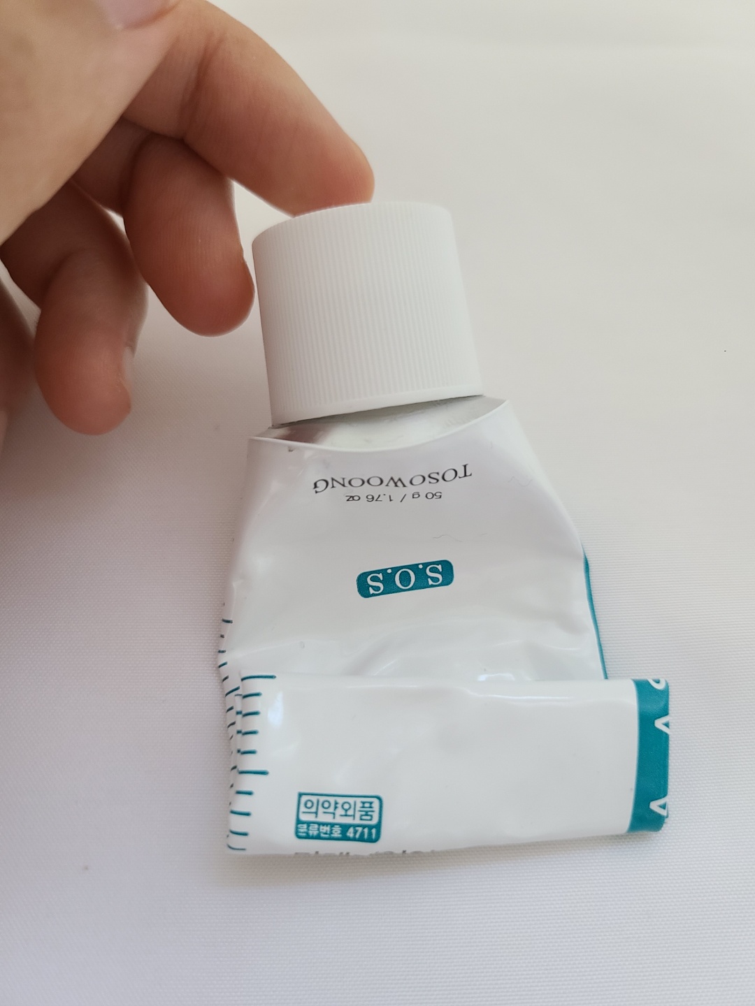 토소웅 흔적크림을 평소 사용하는 만큼 짜보았어요. 음.. 이전 사진에서 느끼셨을지 모르지만, 튜브와 뚜껑 주변이 좀 지저분하죠?😅 튜브형 알미늄으로 되어 있는데 연고와 같이 한번 누르면 크림이 계속 흘러나오는 단점이 있어요. N년차 사용하면서 꾸준히 느끼고 있는 불편한 점이랍니다. 그래서 항상 뚜껑 주변이 지저분~ 용기가 일반 크림들과 같은 말랑한 용기로 변경되면 참 좋을 것 같아요. (의약품이라서 그런가?)