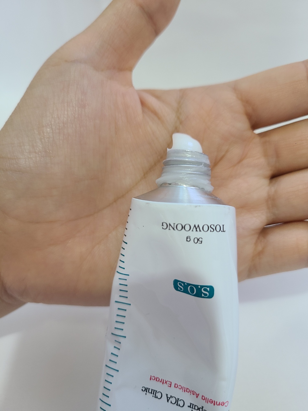 앞서 설명했듯이 용기가 다소 불편해요! 또 제형이 연고 그 자체라고 보시면 됩니다.😅 유분기가 있고 무거운 느낌이에요. 제형 특성상 끈적임이 있고 흡수가 바로 되지 않아요. 제 기준으로는 5분~10분 정도면 흡수되는 것 같아요. 토소웅 흔적크림을 바르고 젖은 머리를 말리면 끈적임에 머리카락이 달라 붙어서 기초 중 크림만 따로 나중에 바르고 있어요.