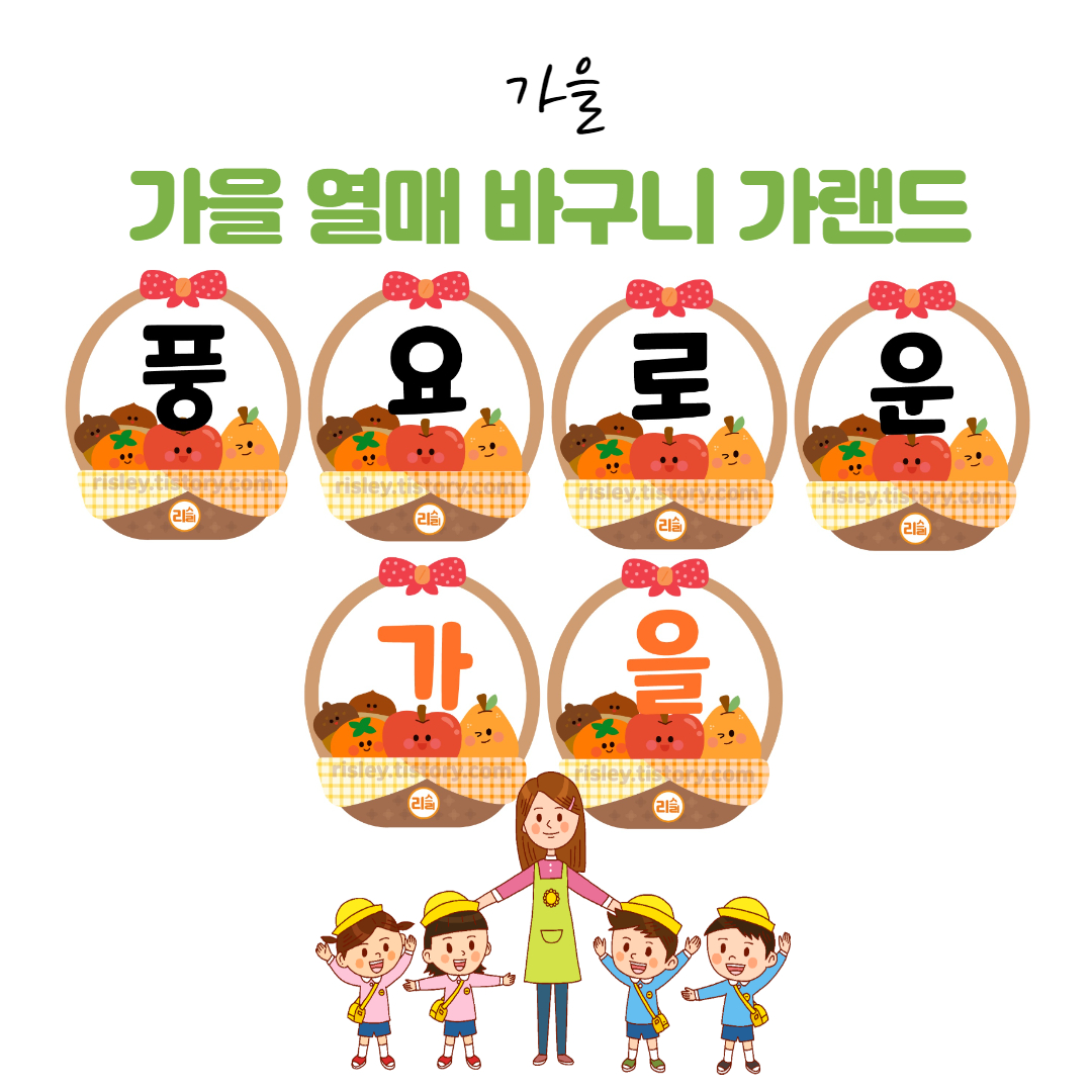'가을 열매 바구니 가랜드'를 활용한 다양한 예시 모습도 준비해보았습니다! 제가 준비한 문구를 활용해도 좋고, 선생님들만의 톡톡튀는 아이디어로 재미있는 가랜드도 꾸며보세요~ 가을열매 바구니인 만큼, 풍요로운 가을이라는 문구도 참 잘 어울리죠?!