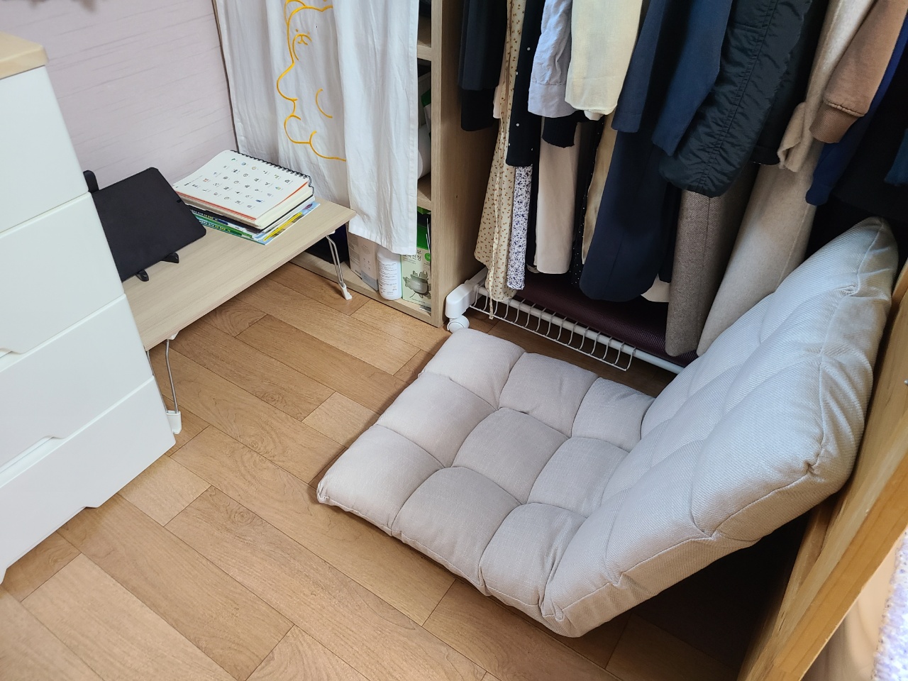 최근 가장 잘 샀다고 생각하는 것 중 하나가 바로 좌식쇼파예요. 방이 넓은 편이 아니라 여유 공간이 충분하지 않아서 좌식쇼파가 짐이 되진 않을까 하는 마음에 구매를 망설여왔는데, 너무너무 활용도 높게 잘 사용하고 있답니다. 욕심으로는 리클라이너를 구매하고 싶었으나 공간의 한계를 느끼고 좌식쇼파로 스스로 합의했는데 정말 좋은 선택이었습니다.😎