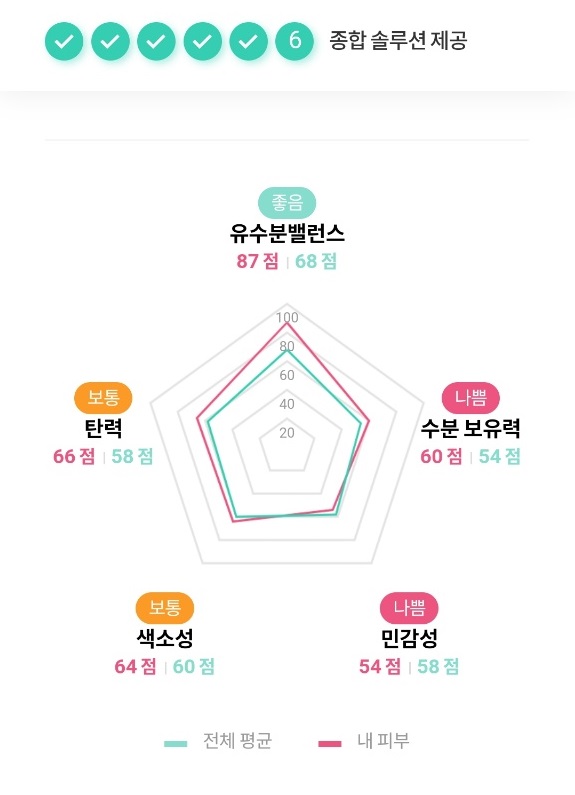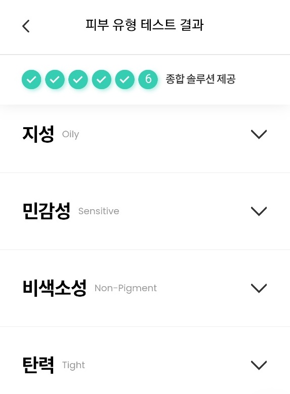 저는 경미한 지성, 심한 민감성, 경미한 비색소성, 경미한 탄력을 가진 피부타입으로 저자극 제품을 사용하는 것이 중요하다는 결과를 얻을 수 있었어요.
