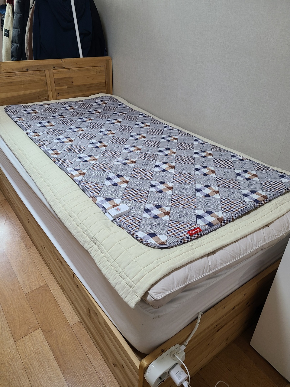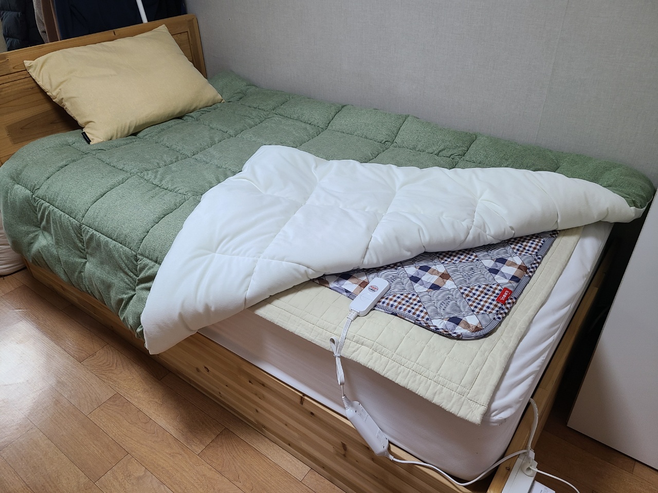 일월 카본매트 싱글 사이즈. 슈퍼싱글 침대에서 사용하기 딱 좋아요~ 슈퍼싱글 침대라 사방 모서리는 빈 공간이 생기는데, 매트 틀고 따뜻하게 누워 있다가 모서리에 몸이 가면 얼마나 차게 느껴지는지 매트의 소중함을 더더욱 깨닫게 해요.😊 카본매트는 바로 사용하기보다 위에 얇은 이불이나 패드를 깔고 사용하세요~ 저온화상 예방에도 좋답니다!