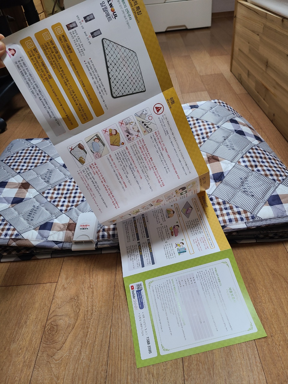 사용설명서의 내용 중 기억해두면 좋을 내용은, 보관시 말지 말고 접어서 보관하며, 매트 위에 무거운 이불 등이 쌓이지 않도록 맨 윗쪽에 보관해야 합니다. 또 세탁이 가능한 제품이지만 가벼운 손세탁을 권장하고 세탁은 사용하는 전체 기간 중 5회 미만으로 하라고 하네요! 불가피하게 기계세탁 시에는 울세탁 코스 등 최대한 자극이 없도록 조정하는 것이 좋을 것 같아요.