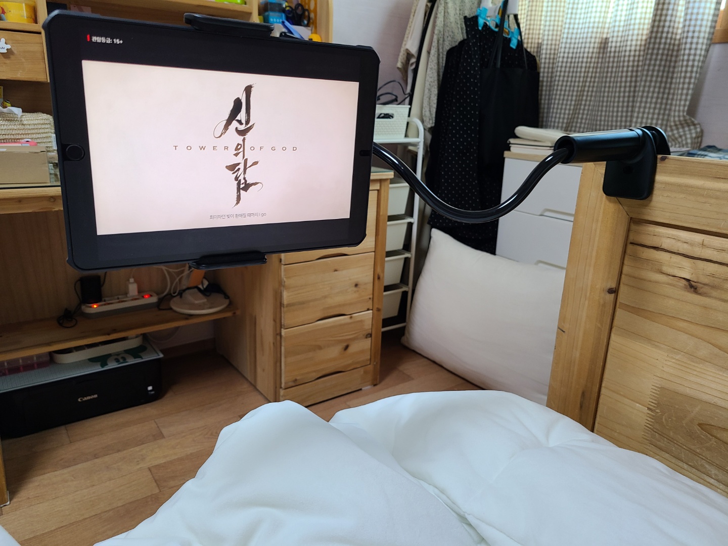 아이패드 침대용 거치대가 없었을 때는 침대 위에서 보면 너무 가깝고, 책상에 올려두고 보면 너무 멀어서 불편했는데 왜 이제야 거치대를 구매했는지! 너무 유용하게 요즘 잘 사용하고 있습니다. 학창시절에 즐겨봤던 웹툰 신의탑이 넷플릭스 애니로 풀려서 몰아봤어요~ 꿀잼꿀잼. 기다리고 기다리던 귀멸의 칼날도 본방송을 시작했는데 시즌2 완결이 되면 그때 왓챠 결제해서 몰아볼까봐요.😂
