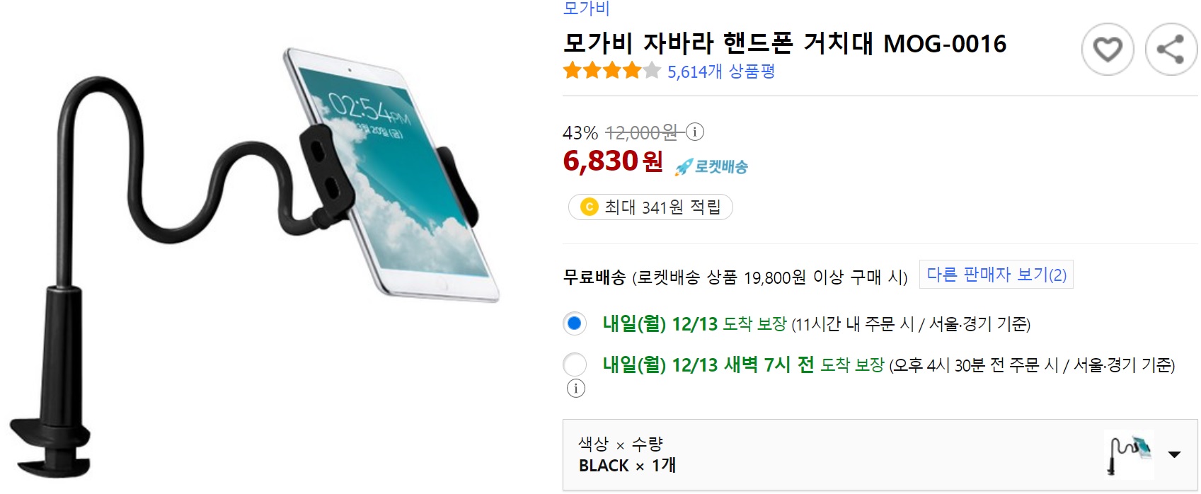 태블릿 전용 거치대는 태블릿의 무게를 견딜 수 있도록 더욱 견고함이 요구되기 때문에 가격대가 높은 편이라, 저는 태블릿과 함께 사용이 가능한 '모가비 자바라 핸드폰 거치대'를 구매했어요! 로켓배송의 편리함에 길들여져서 이제 웬만한 쇼핑은 쿠팡 먼저 둘러보게 되는 것 같습니다~ 6800원이라는 저렴한 가격에 다음날 슝 날아온 아이패드 거치대🙂