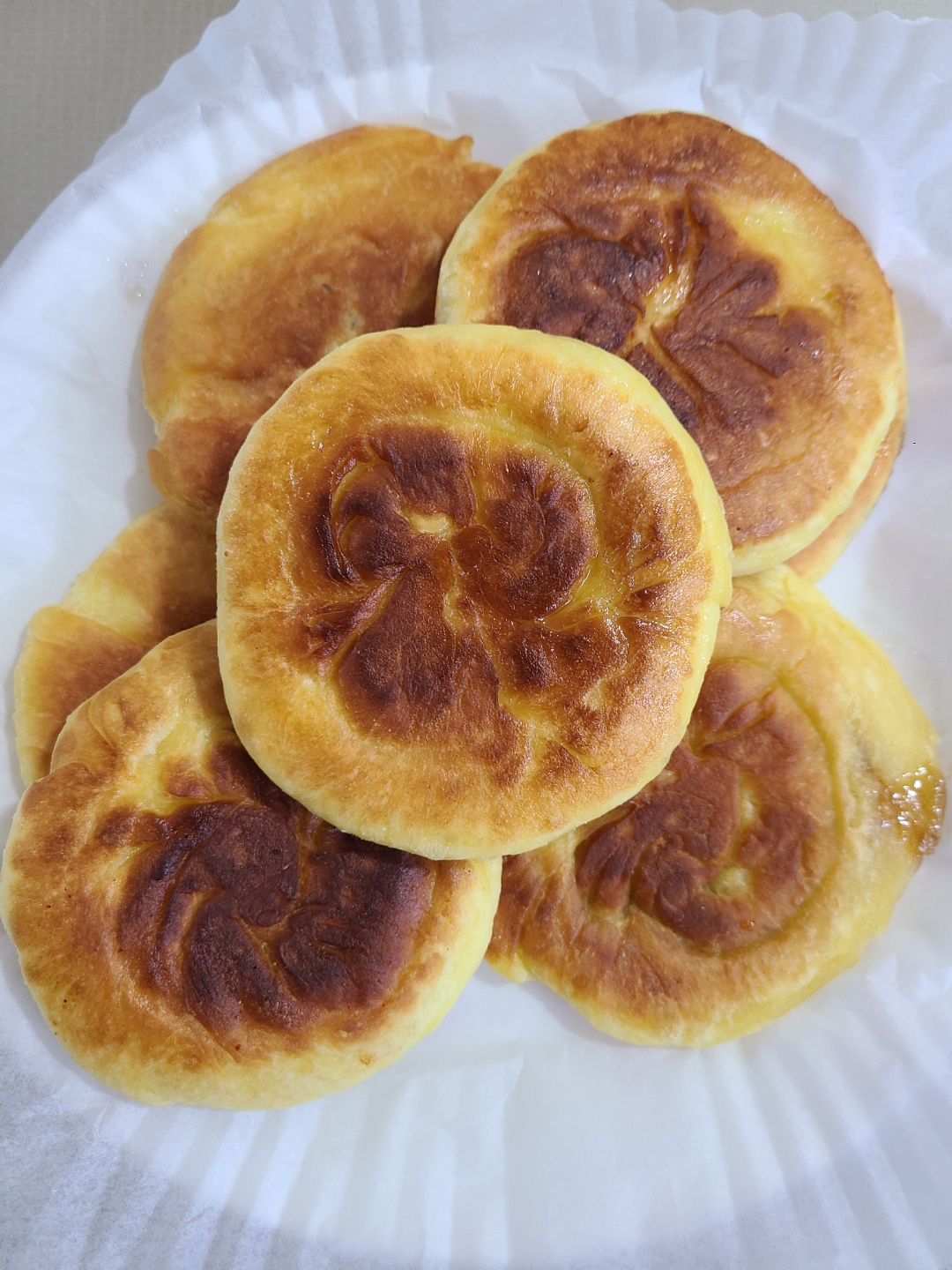 맛있게 구워진 호떡들. 뒤집어서 1분 정도 기다렸다가 빼줍니다~