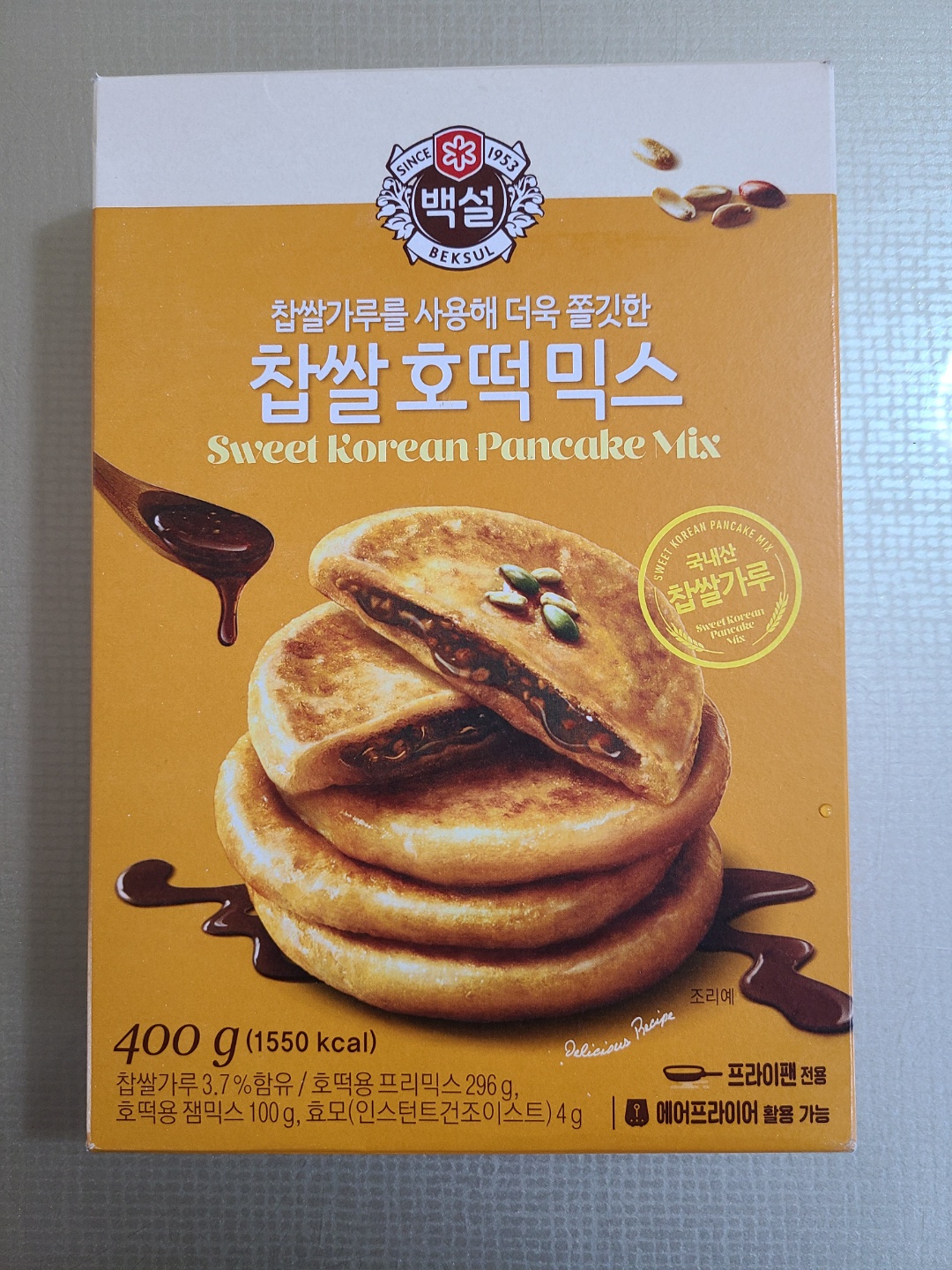 요즘 핫케이크에 꽂혀서 자주 먹고 있어서 마트에서 핫케이크 가루를 사려는데, 진열대에 호떡 믹스가 종류별로 주르륵 놓여 있더라고요~ 요즘은 찹쌀 호떡, 인절미 호떡, 치즈 호떡 등 집에서 만들어 먹을 수 있는 호떡 종류도 참 다양하네요. 저는 기본에 충실한 백설 찹쌀 호떡 믹스를 구매했습니다. 가격은 마트에서 2400원 정도였던 것 같아요~
