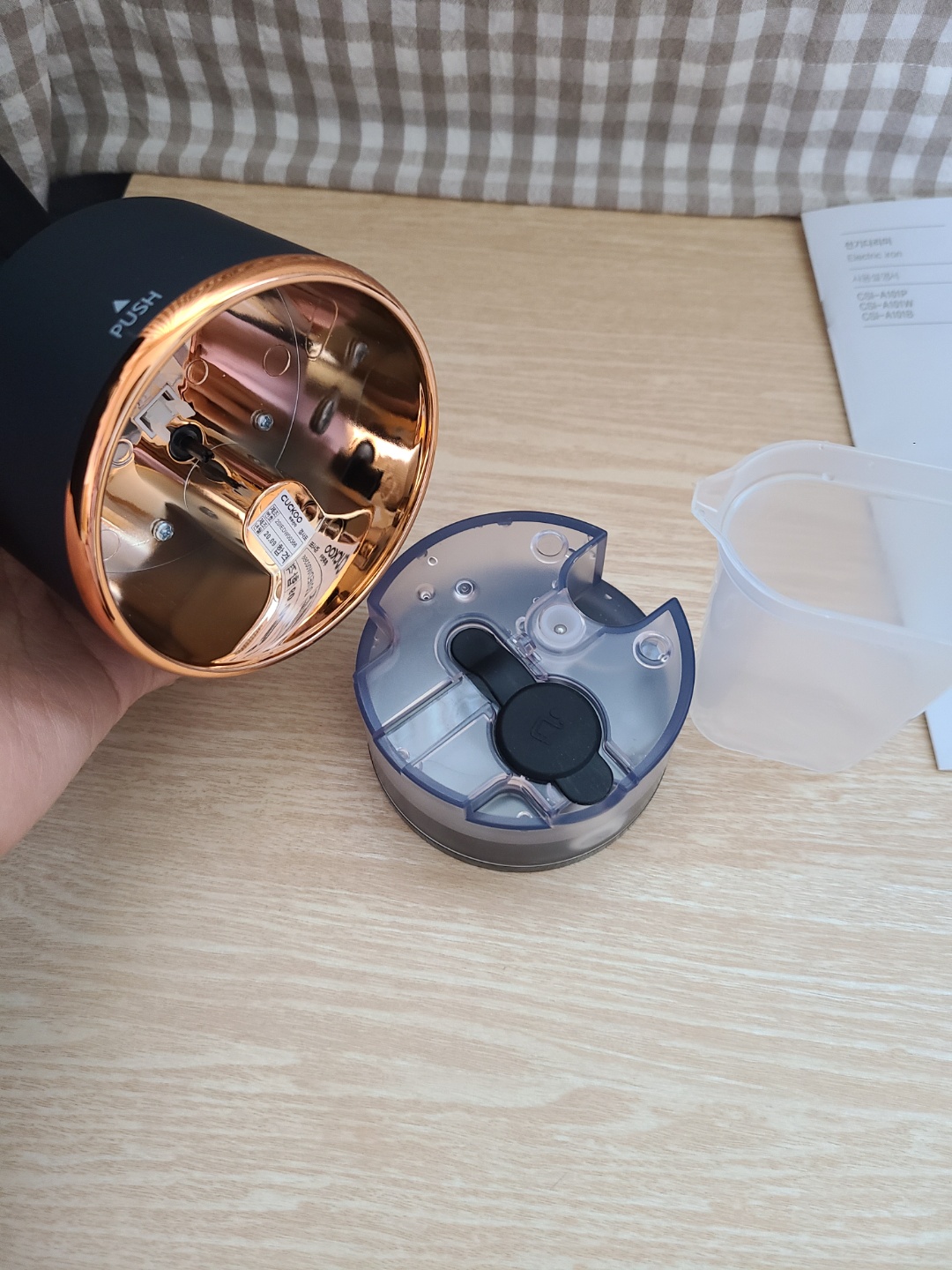 -크기는 아기자기한데 물탱크 용량이 꽤 많아요. 무조건 가볍기만한 제품은 또 물탱크 용량이 너무 적다는 불편함이 있습니다. 쿠쿠는 적당한 무게감에 적당한 물탱크 용량이 더해져 여성들이 사용하기 안성맞춤인 것 같아요.