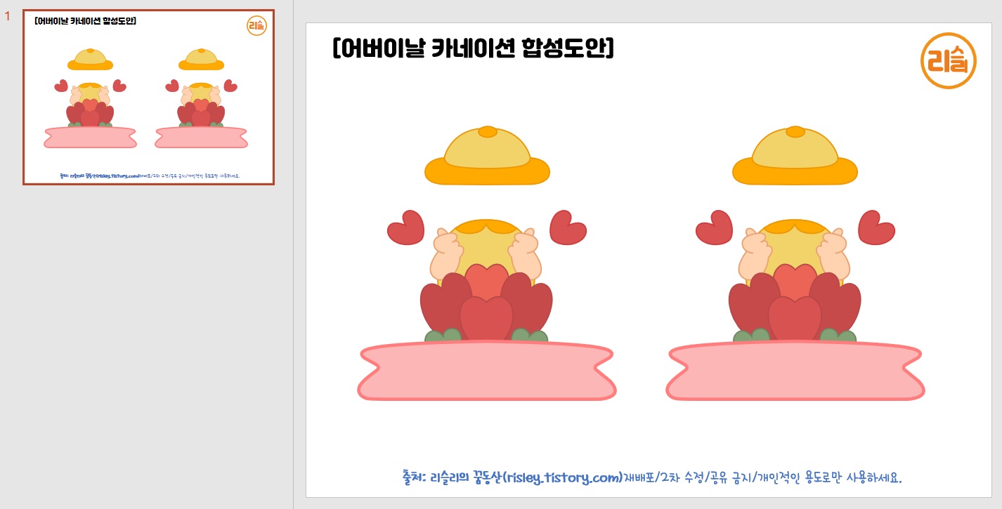 블로그 활동이 요즘 영 뜸한데,, 그래도 5월에는 어린이날, 어버이날 등 다양한 기념일이 있다보니 그냥 지나치기는 아쉬움이 남을 것 같아서 주말에 시간내서 자료 하나 올려봅니다. 일상이 좀 심심하고 지루해야 블로그 생각이 나는데 요즘은 또 다른 취미활동을 시작해서 매일매일이 바쁘다보니 블로그까지 신경쓰기 벅차네요.🤣🤣 그래도 잊지 않고 가끔이라도 방문해주시는 선생님들이 계시니 종종 찾아오도록 노력하겠습니다! 리슬리 블로그 자료는 현직교사의 마음으로 쿨공유합니다. 제작 및 공유해드리는 정성을 생각해서 댓글과 공감은 필수로 남겨주세요.