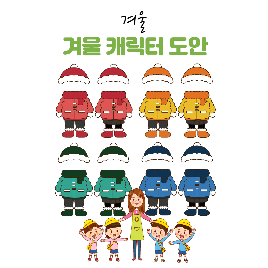 안녕하세요! 가을 캐릭터 도안을 마지막으로 올린 것이 얼마전 같은데~ 현장에서는 벌써 겨울 환경판을 준비할 시즌이 되었네요. 막바지 가을을 보내며 여러 가지 행사와 활동들로 참 바쁘시죠? 때로는 인증 준비, 활동 준비로 눈코뜰새 없이 분주하고 반복되는 일상이 지치게 느껴지기도 하는 요즘입니다. 그러니까 겨울맞이 환경구성으로 골치아프지는 말자구요! 올해도 새로운 도안을 올려드리니 도움이 되신다면 좋겠습니다.😊