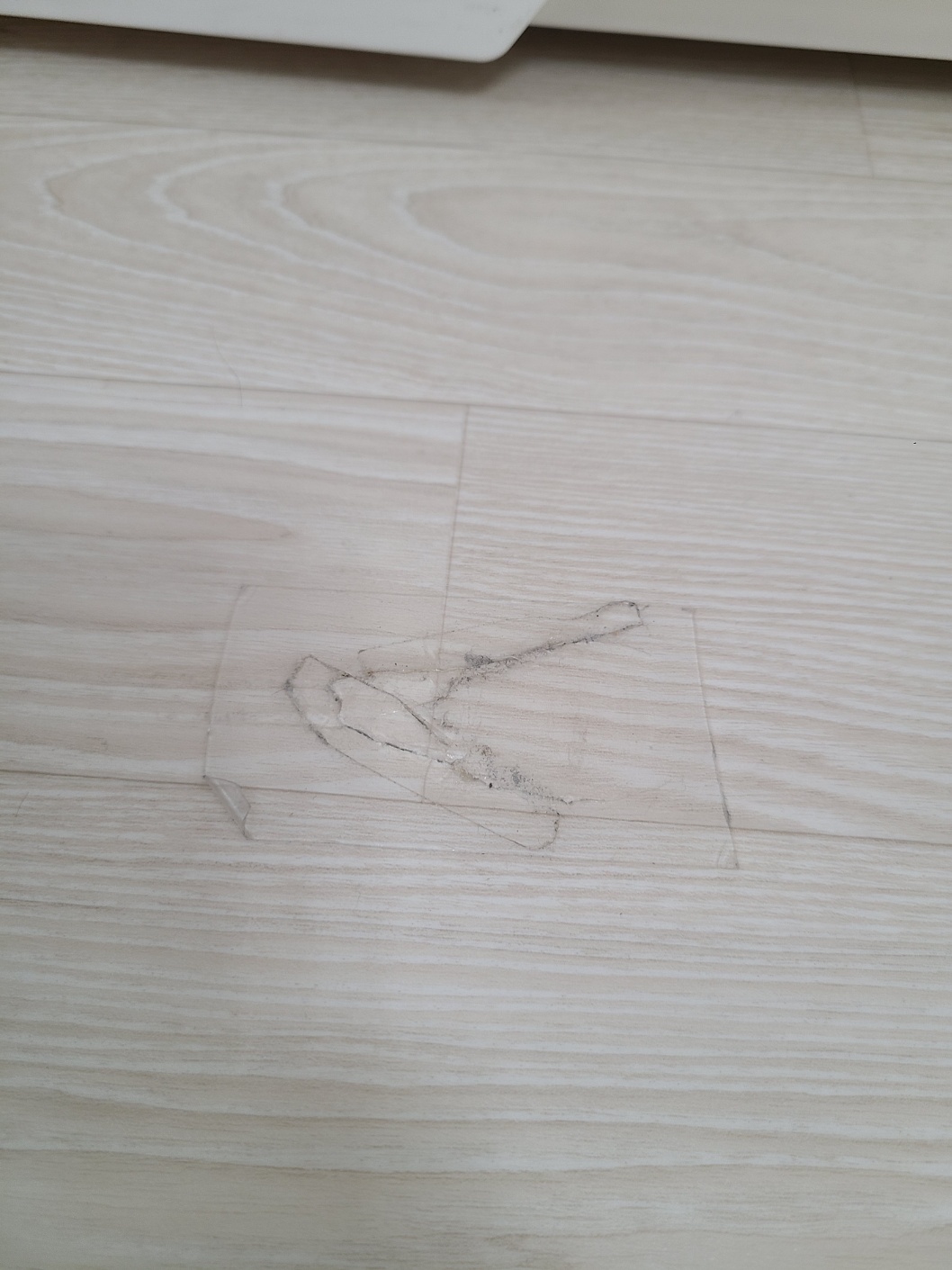 저도 두달간 살다보니 냄비 뚜껑을 떨어뜨리는 등으로 작은 찍힘들이 생길 수 밖에 없더라구요~ 너무 많이 찢어진 부분은 싱크대에 사용했던 방수 테이프를 붙여두었습니다. 또, 장판이 너무 잘 눌리고 잘 찍히길래 사용하는 책상에는 다리에 부직포 보호대를 붙여두고 쓰고있어요.