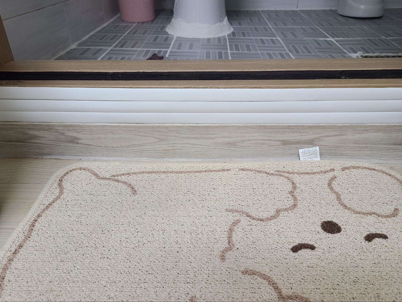 한때 진지하게 고민했던 화장실 문의 문제. 화장실 문 하단의 틈새가 벌여져 있어서, 화장실에서 씻고 나오면 항상 문틈 사이로 물이 새어 나가더라구요. 화장실 문 밑에 붙일 수 있는 '물 차단 보호막' 같은 것을 사서 붙일까 하다가.. 잘 떨어진다는 후기를 보고 씻는 위치를 변경해서 최대한 문쪽으로 물이 튀지 않게 조심해서 씻고 있어요.