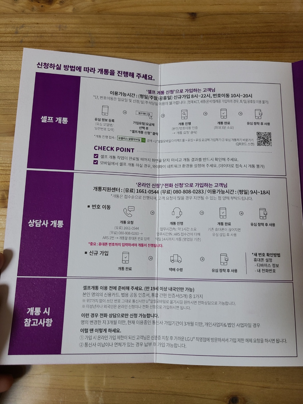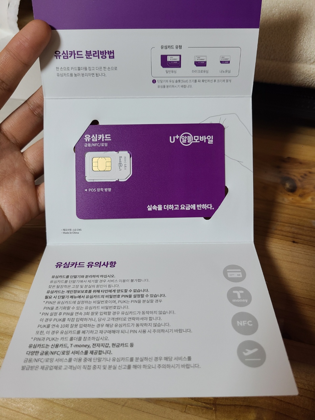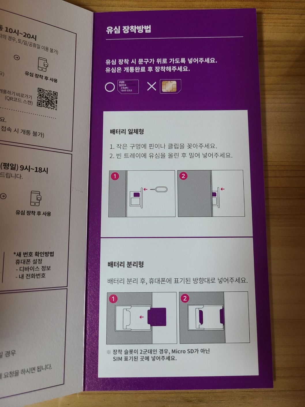 핸드폰 개통관련이나 유심 장착방법은 위 사진을 참고해주세요~