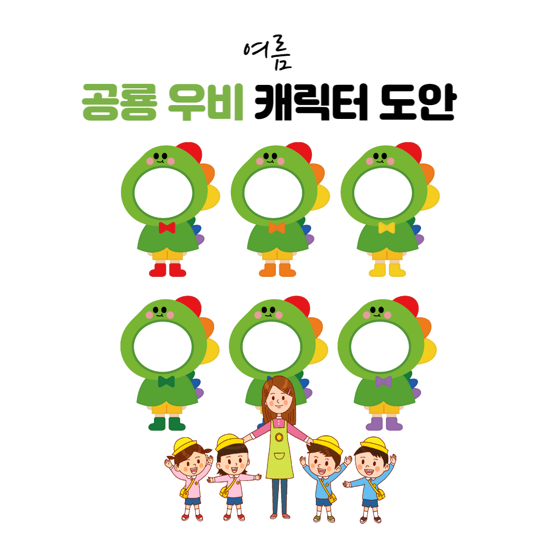 공룡 캐릭터 도안 활용 예시입니다! 아이들의 얼굴을 넣어 꾸며주시면 너무 깜찍하겠죠? 알록달록 모아보니 더욱 귀여운 공룡 친구들이에요~ 아이들의 얼굴을 넣어 예쁘게 활용해주세요!