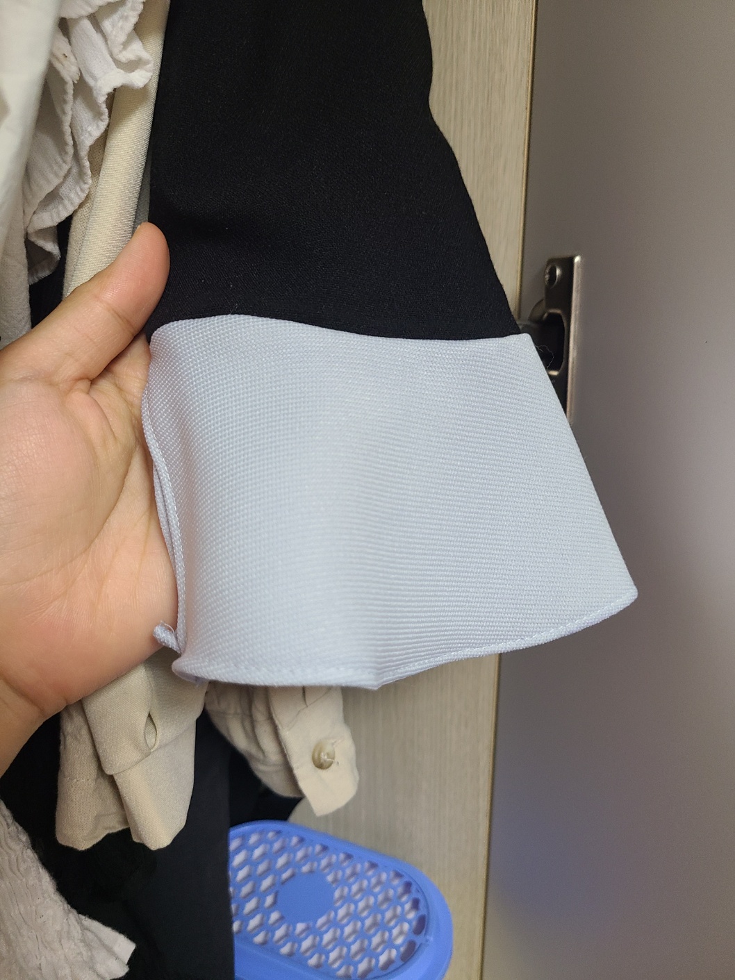 하여간 저는 세탁물 분류 없이 한번에 세탁기를 돌리는데요~(속옷 제외. 속옷은 언제나 손빨래 합니다.) 자취 한달차? 두달차? 자취를 시작한지 얼마 지나지 않아 세탁기 대참사가 일어나고 말았습니다. 어떤 옷에서 검은 물이 빠지는 건지 모르겠는데 함께 돌린 세탁물 모두 검은 물이 잔뜩 들었더라구요! 흰색 나시도 검회색이 되고, 위 사진처럼 아끼는 원피스의 포인트 프릴도 칙칙한 회색이 되고 말았어요..