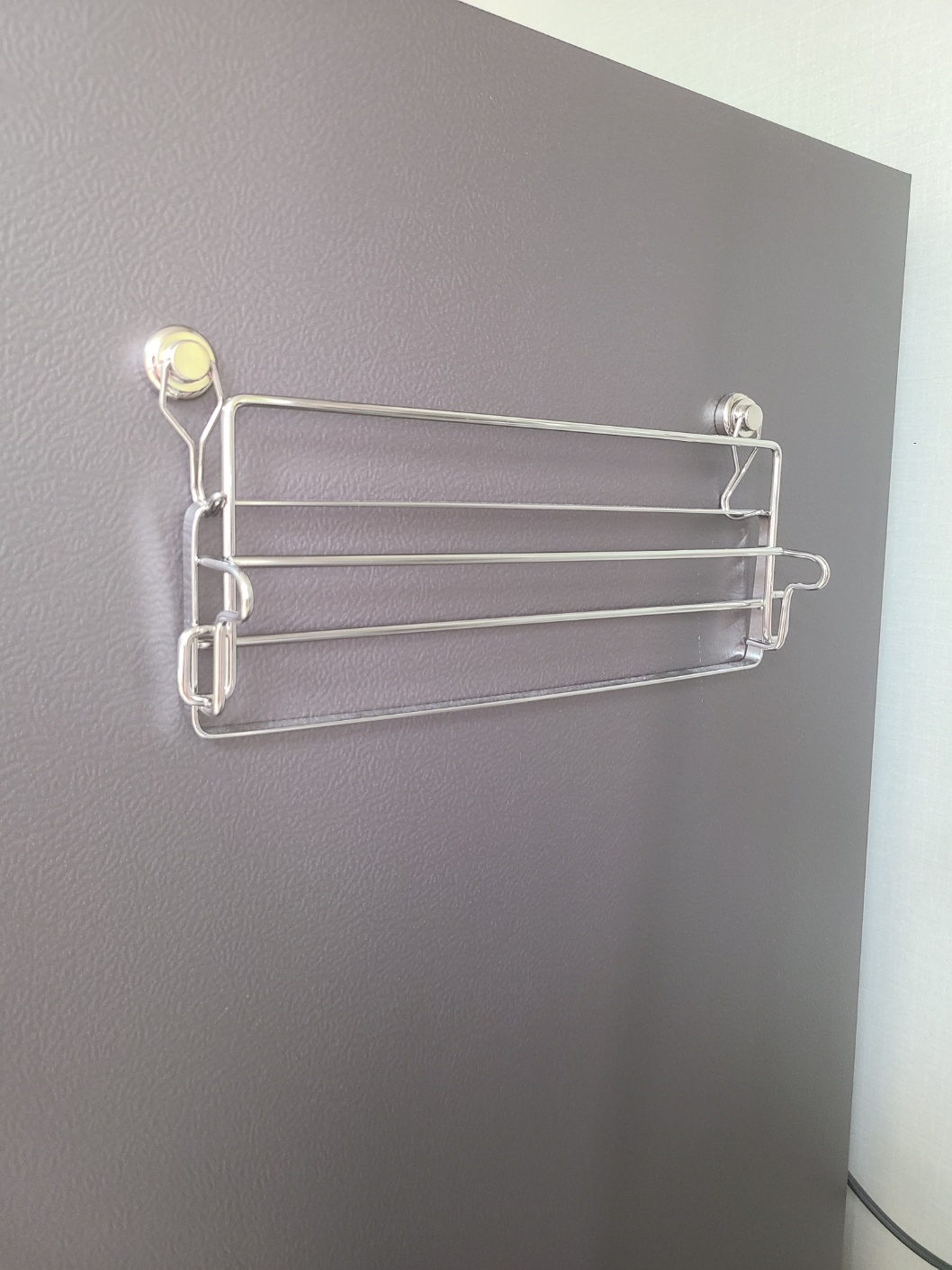자취생 여러분! 냉장고 옆 부분을 다양한 수납 용도로 활용해보세요! 저는 다이소에서 3000원인가 주고 산 자석을 두 개 붙여, 간이 건조대를 걸어 두었어요. 용도는 손빨래한 속옷을 건조하는 용도로 활용하고 있습니다. 행주 등을 걸어두어도 굿.