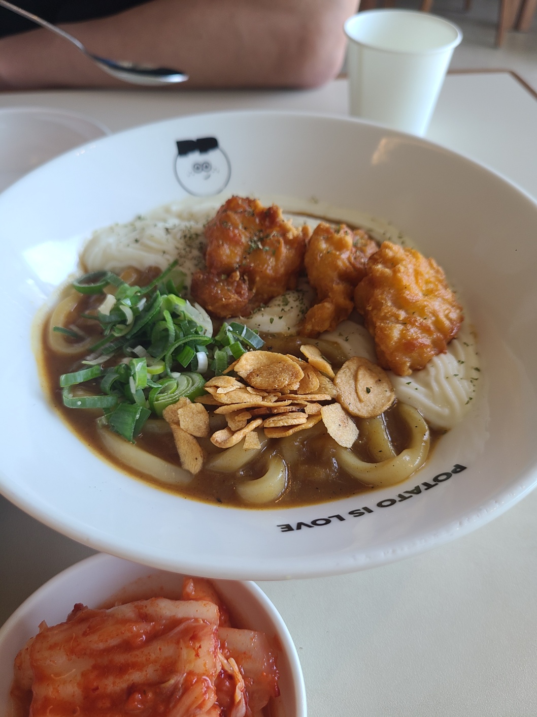 감자눈 카레우동은 카레우동 위에 감자스프가 올라간듯? 감자스프와 함께 먹는 우동 맛도 나름 별미였다. 김치도 맛있어서 리필 완료.