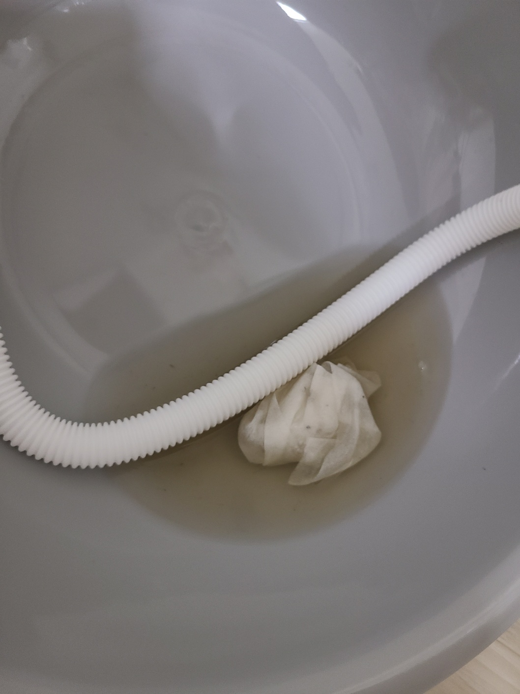 호스가 이렇게나 길어요! 청소 후 더러운 꾸정물이 흘러나오면 비닐에 고이지 않고 바로바로 빼낼 수 있으니 편리합니다. 넉넉한 크기의 대야은 필수~