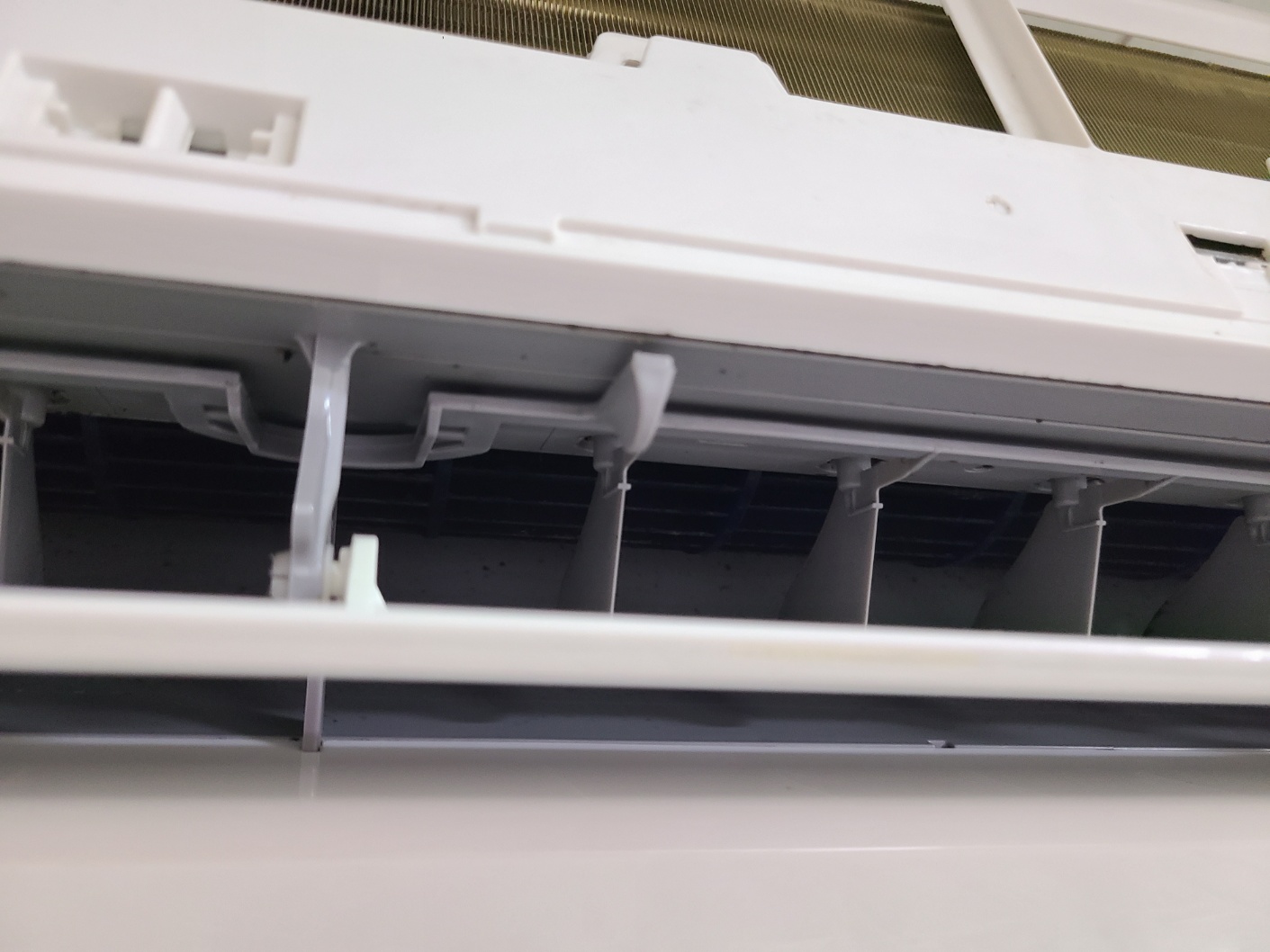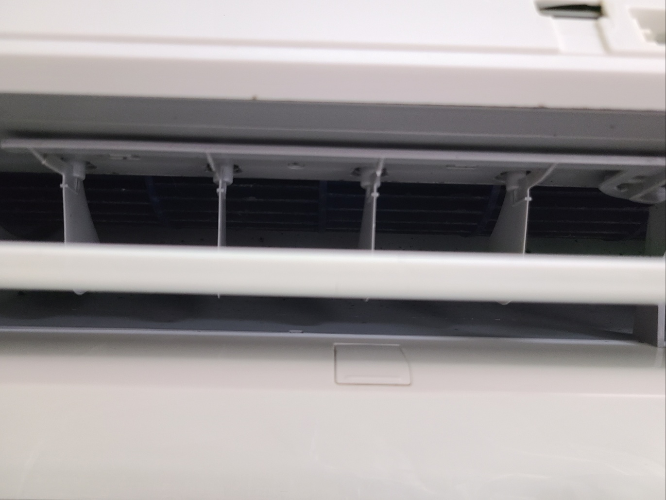 이제 에어컨 주변의 물기와 곰팡이들을 닦아 청소를 마무리해요. 에어컨 내부 플라스틱은 연질 플라스틱이라 유연해서 부러지지 않는다고 해요. 그래서 손을 꽤 깊이 넣어 날개도 닦고, 손이 닦는 부분까지는 뒷면도 열심히 닦아주었어요.
