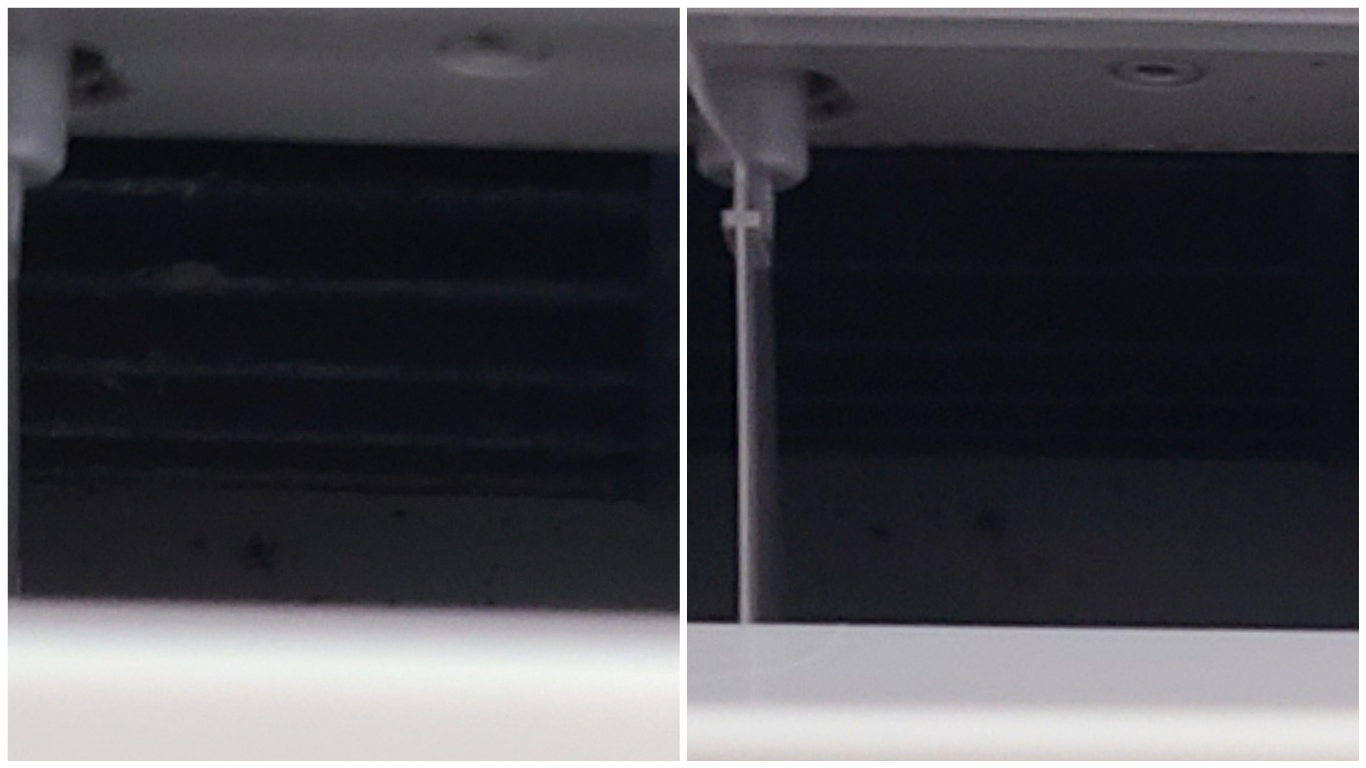 에어컨 내부는 사진으로 잘 찍히지 않더라구요! 그래도 대략 비교해보자면, 전 후 차이가 꽤 잘 보이죠? 물론 분해청소가 아니기 때문에 완벽하게 청소되지 않아요. 저의 경우에는 청소 전과 비교하여 반 이상은 깨끗해진 것 같아 만족합니다.
