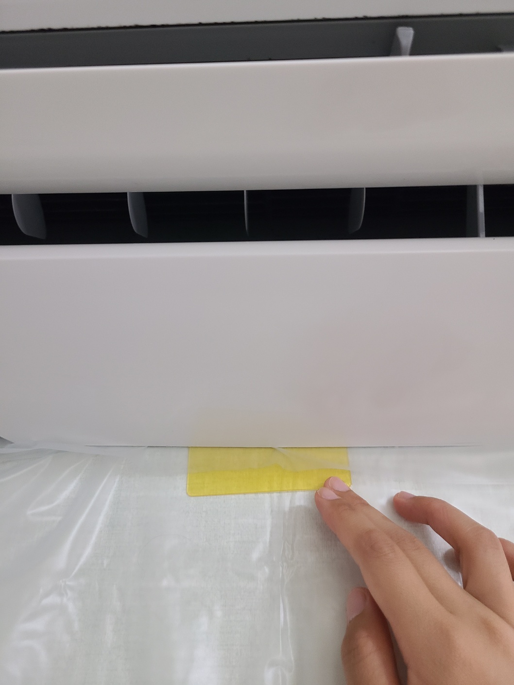 그리고 꿀팁이라면, 저는 에어컨 틈새가 너무 없어서 비닐을 끼워넣기 힘들어 저렇게 비닐이 2중으로 겹쳐지게끔 밀어넣었는데요~ 나중에 비닐을 제거하는 과정에서 고인 물이 벽지 뒤로 흐르더라구요. 여려분은 저처럼 비닐을 대충 끼워넣지 말고 최대한 예쁘게, 많이! 넣어주세요.