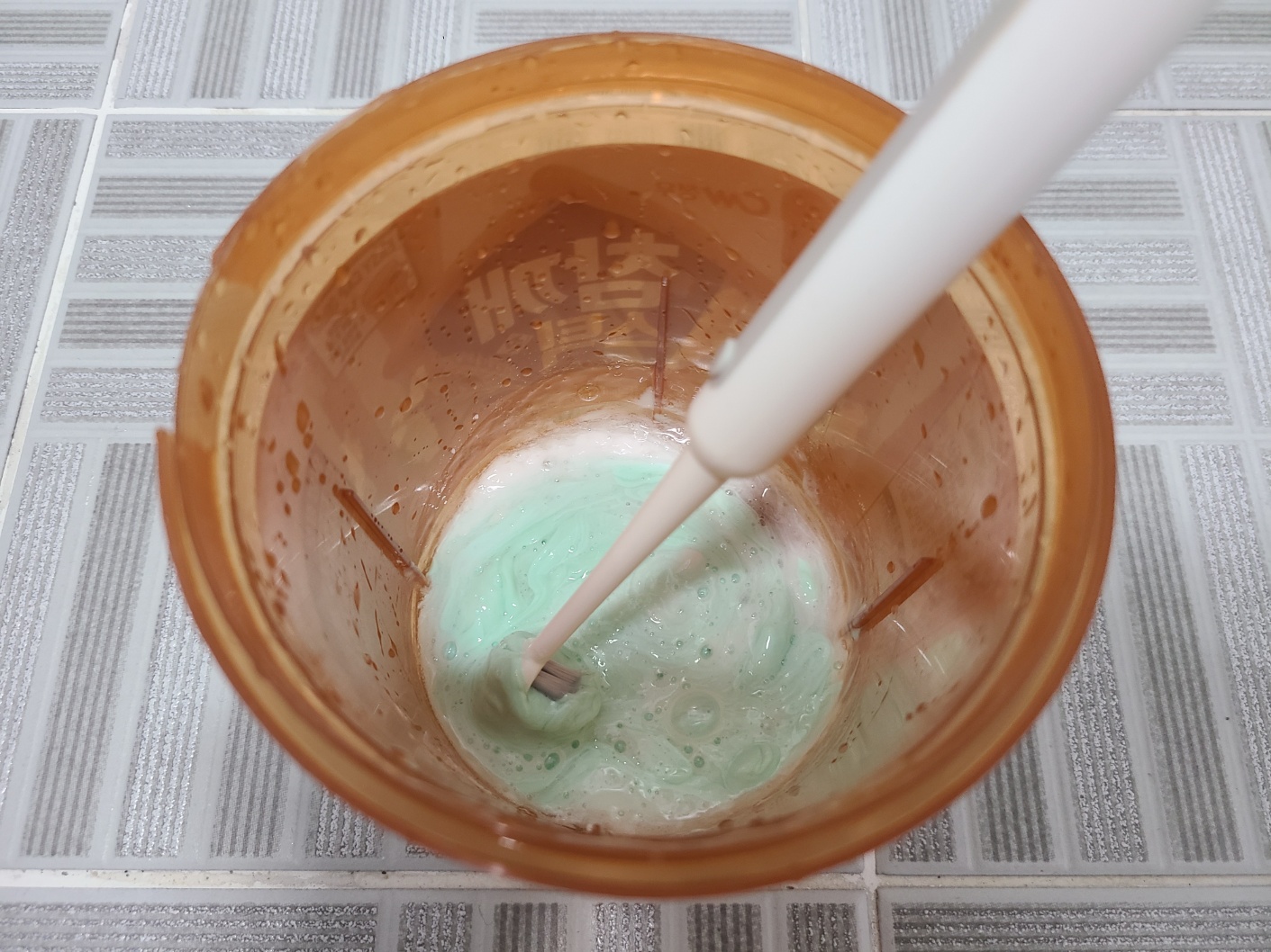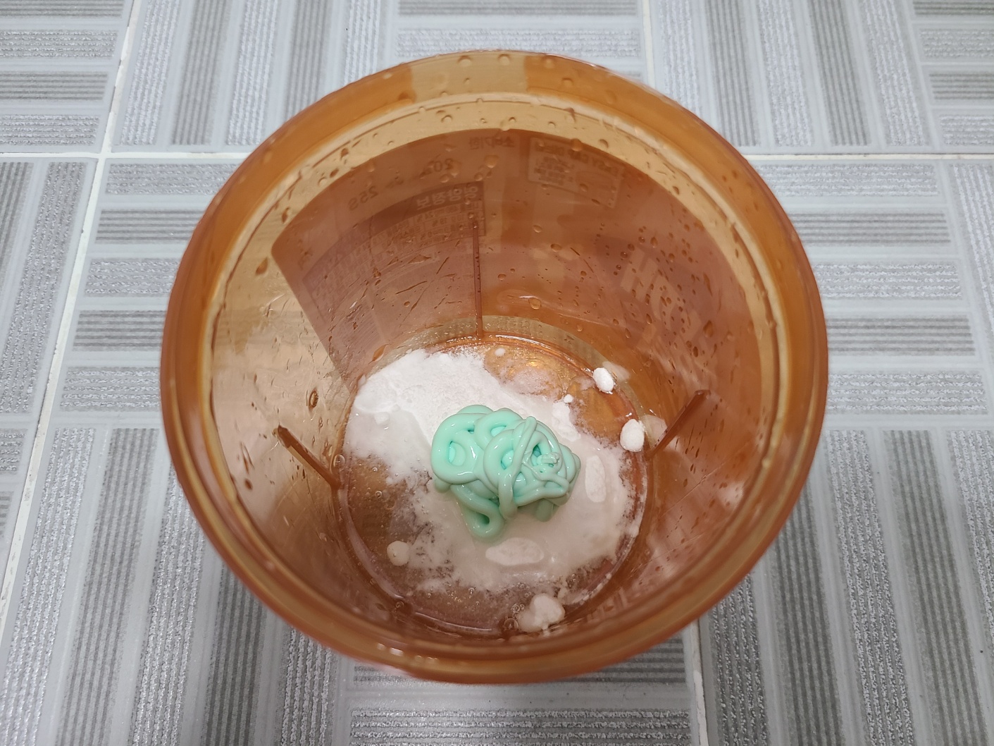 저는 오늘 먹은 참깨스틱 과자 통을 재활용하여 세제를 만들어보았습니다. 신발 세탁 특성상 물이 묻어도 괜찮은 소재의 통을 활용하여 준비한 재료를 1:1:1 비율로 섞어주세요. 치약의 존재감이 압도적인 색상의 세제가 완성되었네요!