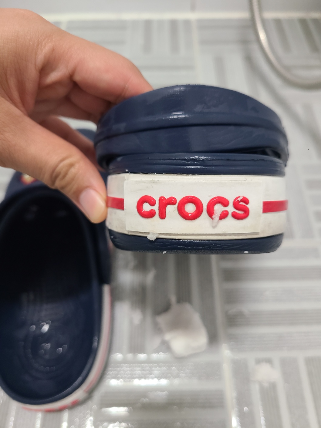 ①크록스는 물로 1차 세척하여 표면에 묻은 흙과 모래를 가볍게 씻어 준비합니다.