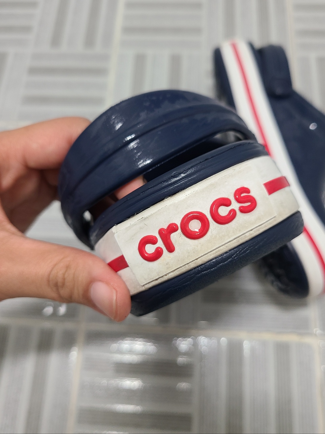 흰색 크록스가 예뻤지만, 크록스 때 등 관리가 두려워서 선택한 색상이 바로 네이비 크록스였어요! 아무래도 흰색, 민트 등 밝은 색상은 때가 타기 쉽고 작은 오염도 눈에 쉽게 띄기 때문에 깨끗한 크록스를 유지하기 위해서 더욱 많은 노력이 필요하겠죠?