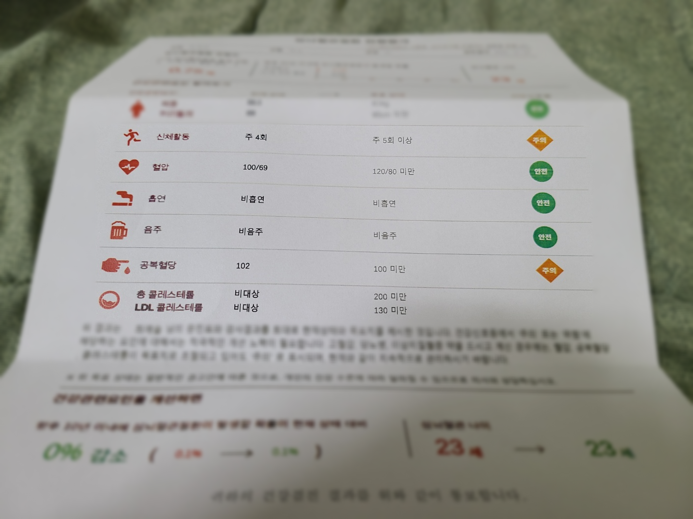 직장인 건강검진 늦으신 분들 많으시죠? 저도 12월에 직장의 불호령이 떨어진 후 부랴부랴 병원 방문해서 건강검진 받고 왔어요😅 약 2주 후 건강검진 결과서를 받아보았는데 올해는 나름 충격적인 결과를 받고 놀랐습니다. 바로 공복혈당 주의 단계에 해당해서 '정상B' 판정을 받았기 때문인데요!