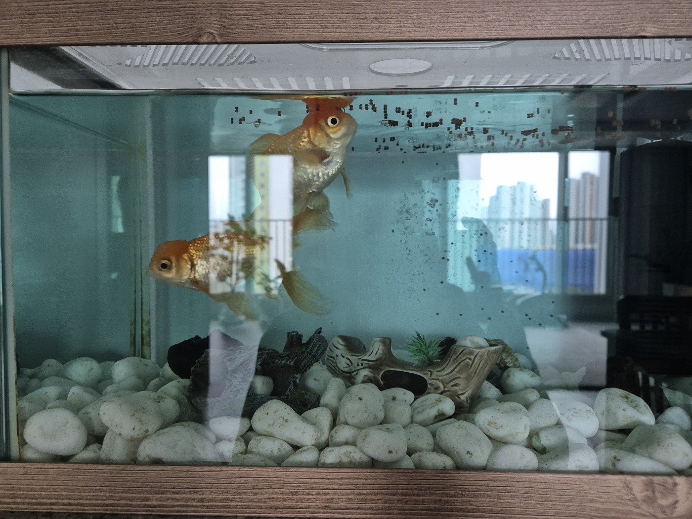 환수하는 물(수돗물)은 하루 전 미리 담아두어 사용하는 것이 좋아요. 금붕어는 정말 놀라울 만큼 똥을 많이 싸는데 물고기 똥이 많이 쌓이면 암모니아 성분이 분해되면서 수면 질산화 농도가 올라 건강에 해롭다고 해요! 산소펌프, 여과기 사용, 물갈이를 제때 해주면 장수하는 행복한 물고기를 키울 수 있을 거예요.