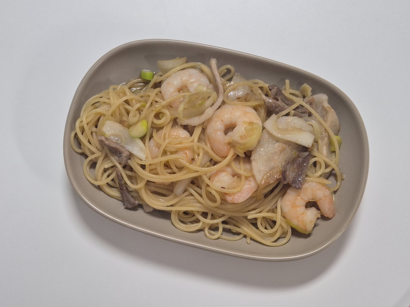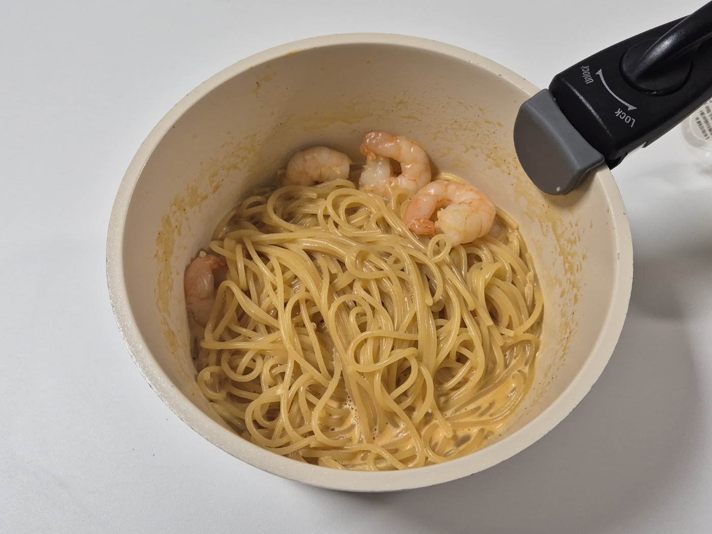 ✔ 재료: 파스타면, 참소스, 마늘, 냉털재료 (양파, 고기, 새우 등)