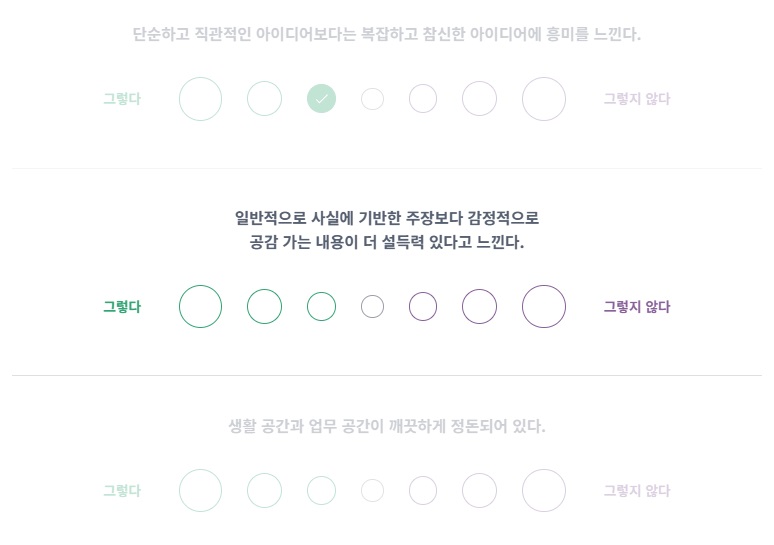 바로가기 버튼을 클릭하면 사이트 링크로 연결해두었어요. 제가 해 본 검사 중 가장 정확하고 대중적인 인지도가 높은 사이트입니다. 무료로 간편하게 할 수 있다는 점이 장점이고 구체적인 성격 특성 설명도 확인 가능해요!