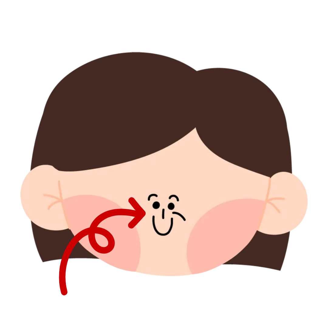 입꼬리 올리기 운동을 통해 중안면 근육이 강화되고 볼 주변 근육이 리프팅되는 작용을 해요. 하루 5회 30초씩 반복해주세요. 얼굴 근육의 움직임이 자연스러워지면 1분까지 늘려서 유지해보아요.